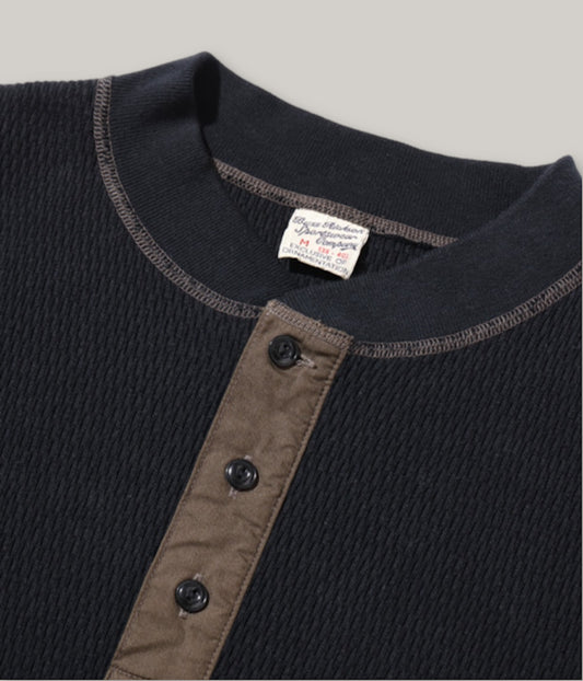 BUZZ RICKSON HENLEY NECK THERMAL - BLACK