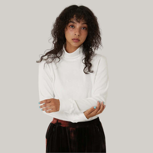 BLUE BLUE JAPAN KNITTED SLUB COTTON RIB TURTLE NECK TEE - NATURAL