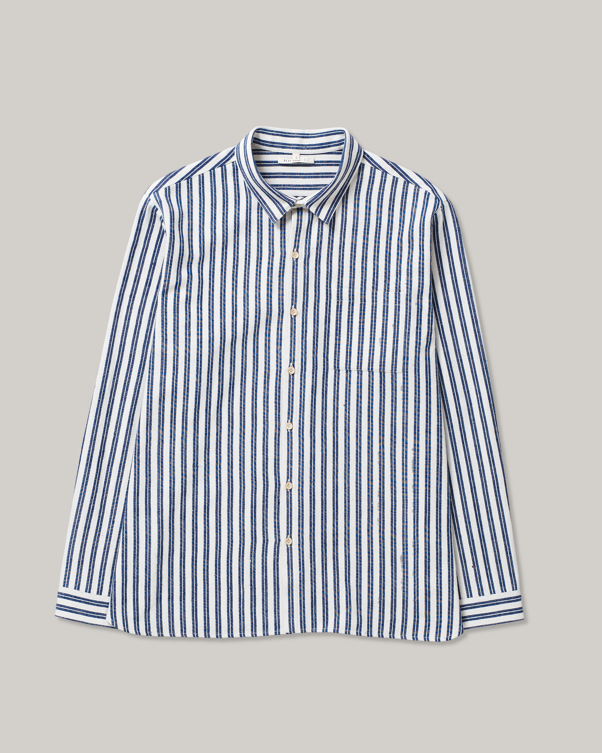 11.11 COTTON STRIPED LOVERS SHIRT - ECRU/ MEDIUM INDIGO