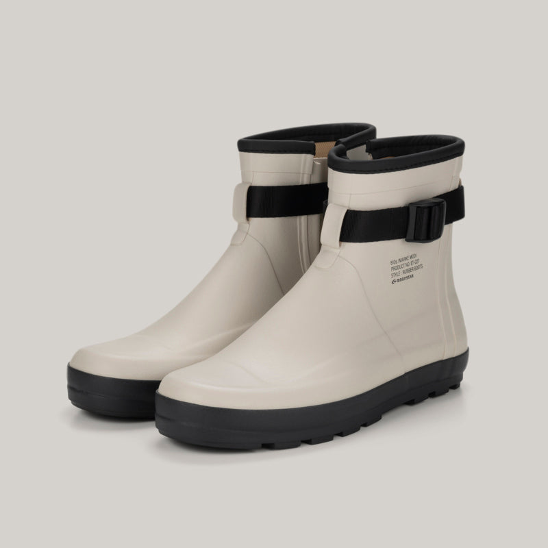 Inspired by rubber work boots , these might be the quintessential snow boot. Made in stealthy black with no lace front and single seatbelt cord fastening at the ankle. Chic and waterproof.