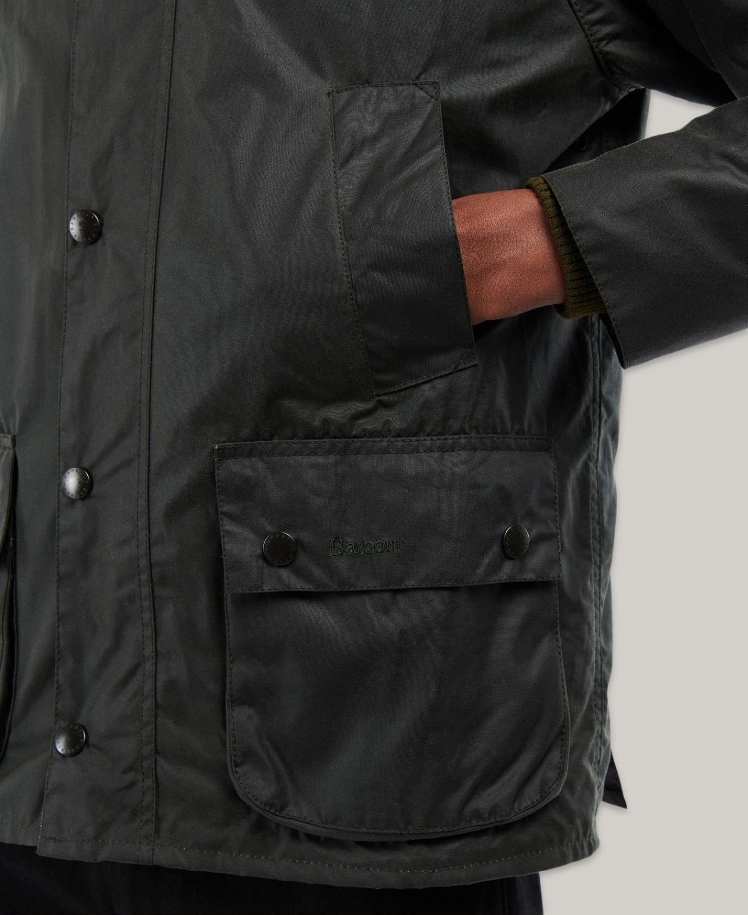 A Bedale has 160 parts, including 49 cut fabric pieces, 103 trims and findings and eight items of packaging, and the jacket takes 36 people in the Barbour factory in South Shields to construct. Shape-wise it is shorter, originally to accomodate riding and slightly boxy to accomodate layering in colder seasons.