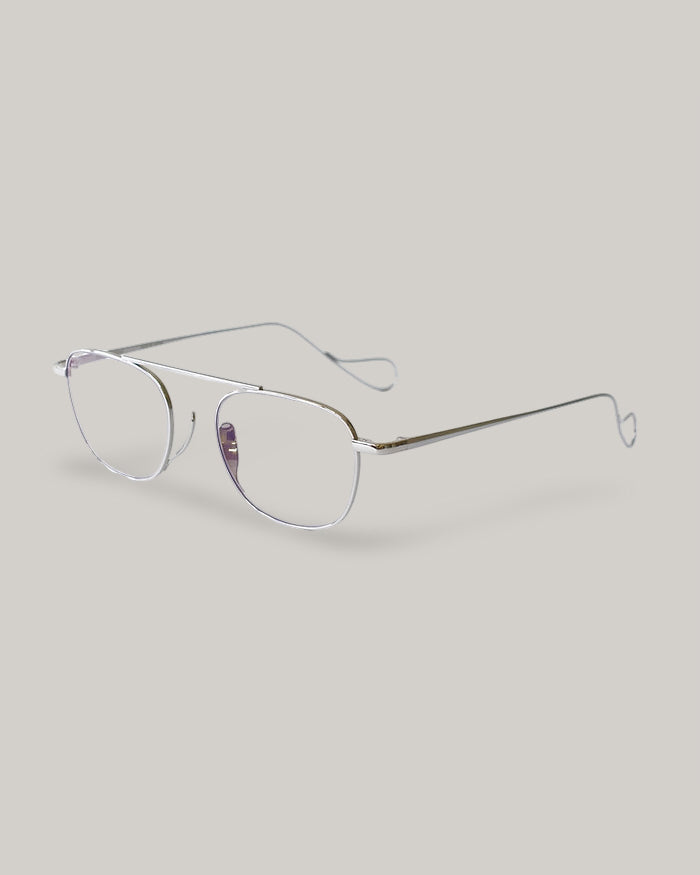 Stunning new frame from Gen at Buddy Optical and the final part of his (P) piano series. The shape itself is a square one with one bridge, using his trademark loops on the temples. The whole piece is perfectly weighted, both in specification and perspective, using an old European detail of metal nose pads to complete the design aria. Fitted with transitional lenses that automatically darken in sunlight, these glasses double as sunglasses, making them both stylish and functional for daily wear.