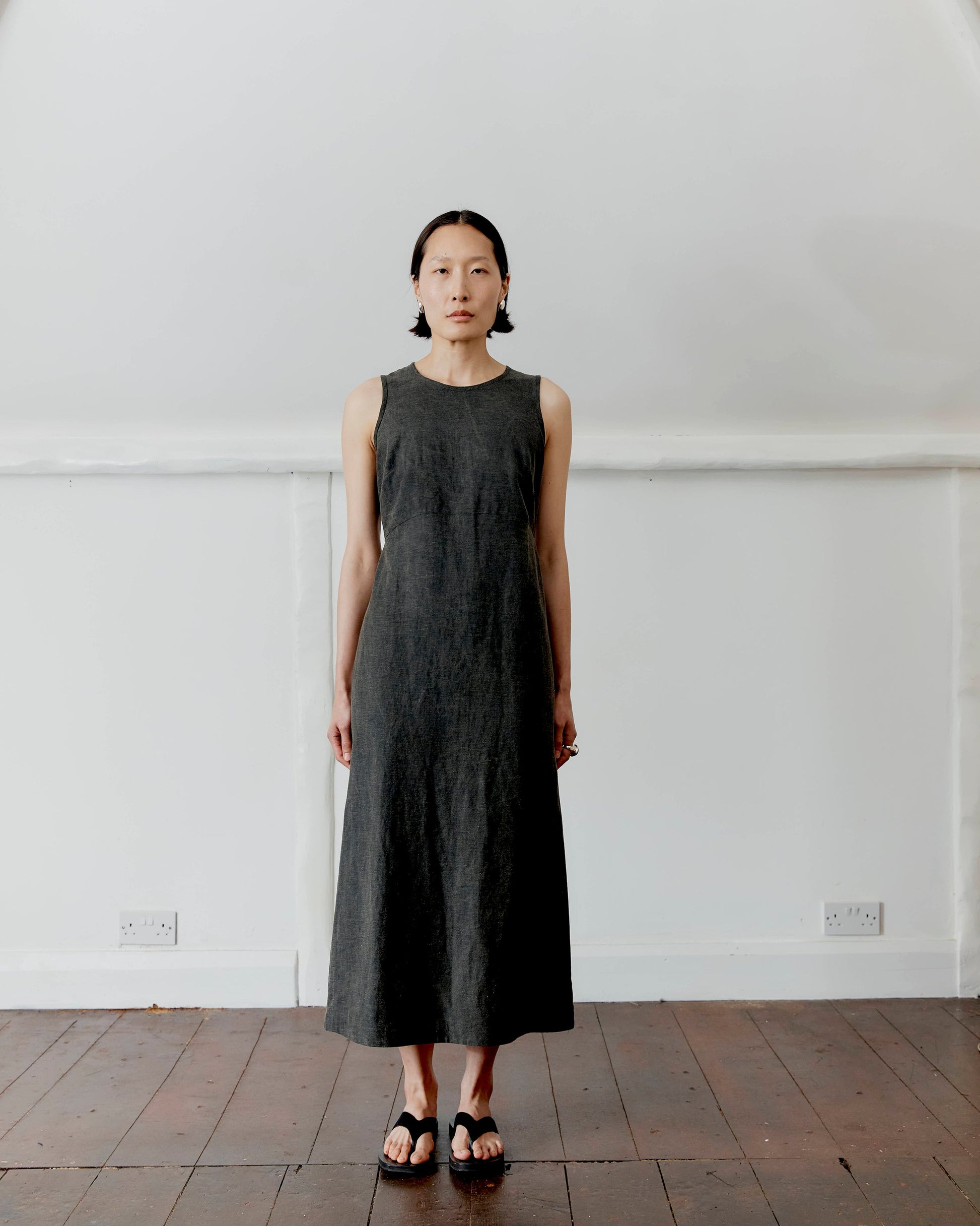 CAWLEY JAPANESE COTTON LINEN DYED BACK ERIKA DRESS - BLACK