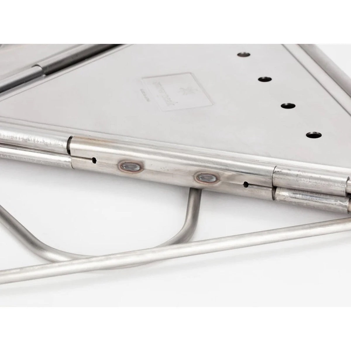 Winner of The Good Design Award 2022 for its innovative structure, The Takibi Fire and Grill from Snow Peak is made of durable stainless steel and designed in Japan for a lifetime of use. Packable, portable and modular, use the Takibi Fire and Grill to create a gathering anywhere. The five piece set includes Grill Net, Grill Bridge, Pack & Carry Fireplace L, Baseplate and Carrying Case.