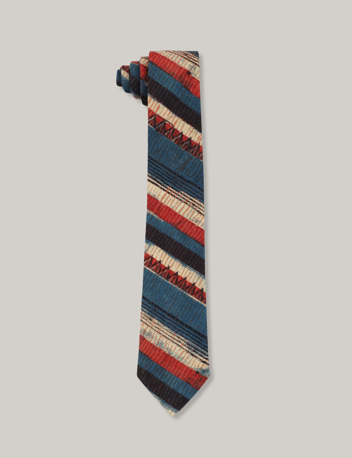 KARDO BLOCK PRINT TIE - BLUE/RED/NATURAL
