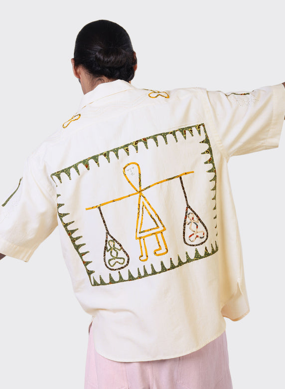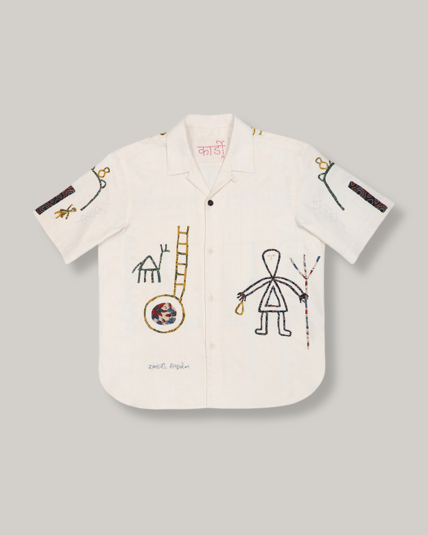Fabric: The Rabari community were originally nomadic travellers, with some settling in Kutch, Gujarat. The women of the community, now working with Kala Raksha, a grassroots social enterprise that is dedicated to preserving traditional arts, have used their creative licence to create a folklore scene using a traditional embroidered applique technique.