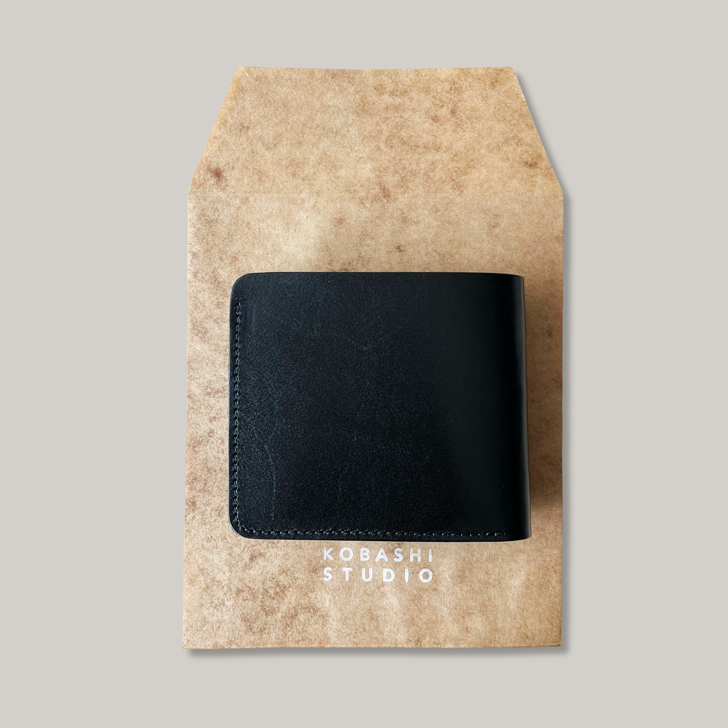 Edges polished and dyed by hand. Minimalist, clean design with no visible logo by Junichi Kobashi. Comes with a wax paper envelope.