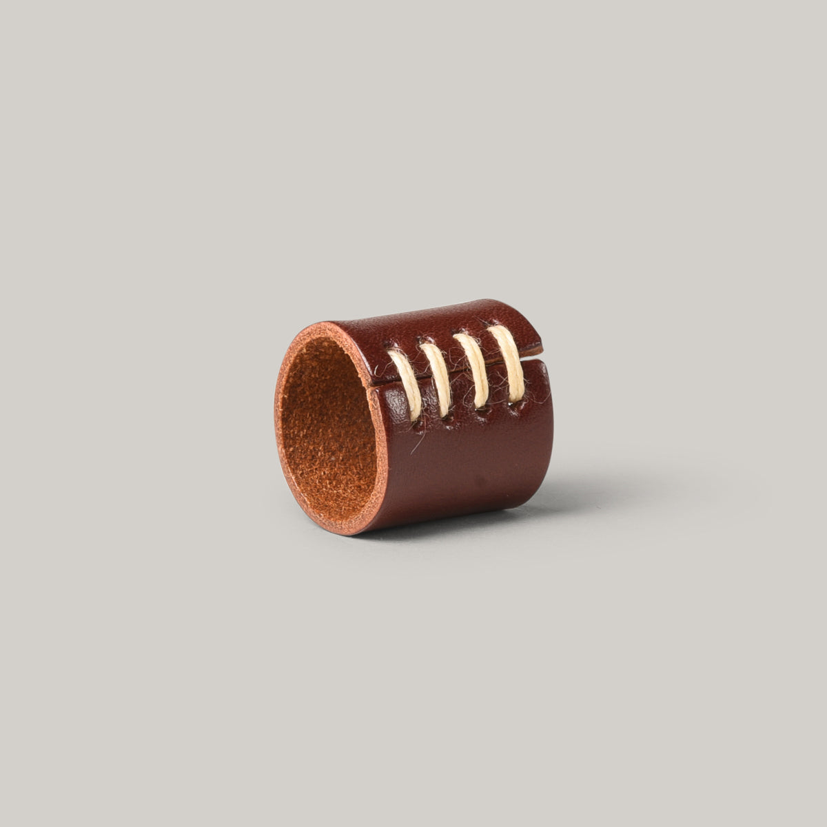 Leather bandana ring. Hand stitched with waxed hemp cord and hand polished finish. Made to order and original Kobashi embossing is done almost microscopically and efficiently at the base. Leather is their original saddle leather vegetable tanned 100% in Himeji.