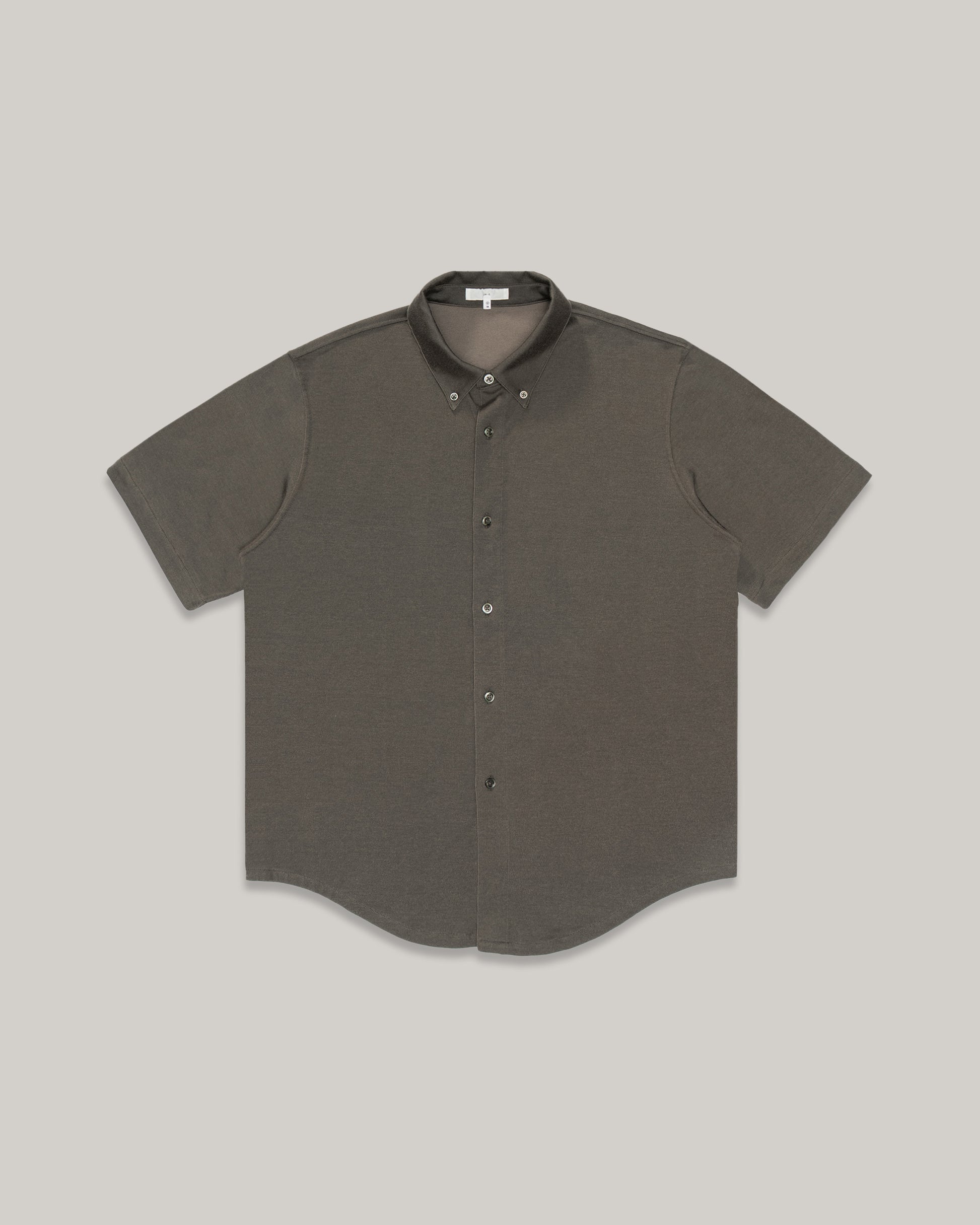 LADY WHITE CO. SS JERSEY BUTTON DOWN - GREY OLIVE