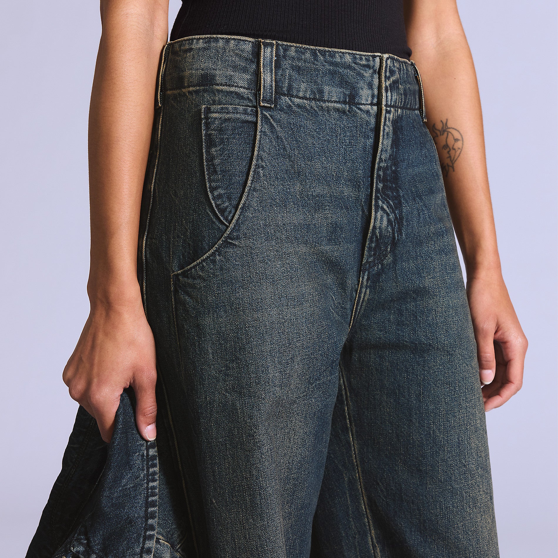 The Moto jeans are made using premium Japanese denim and sit right at your waist with a flattering back pocketing and a bold, barrel leg that curves just right. All inseams are 31".