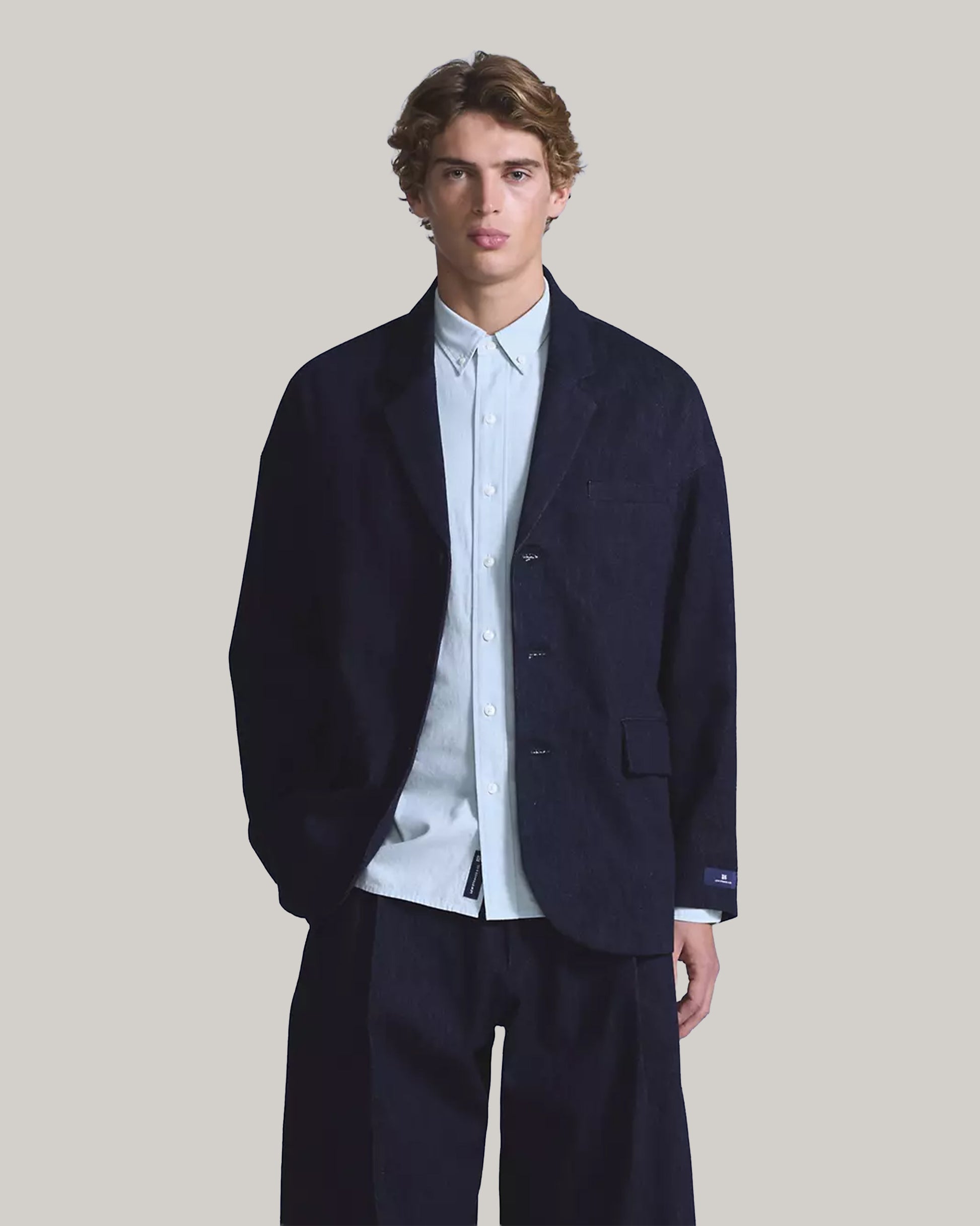 Crafted from premium Japanese fabric, this jacket reflects the Blue Tab line’s focus on refined details and modern tailoring.