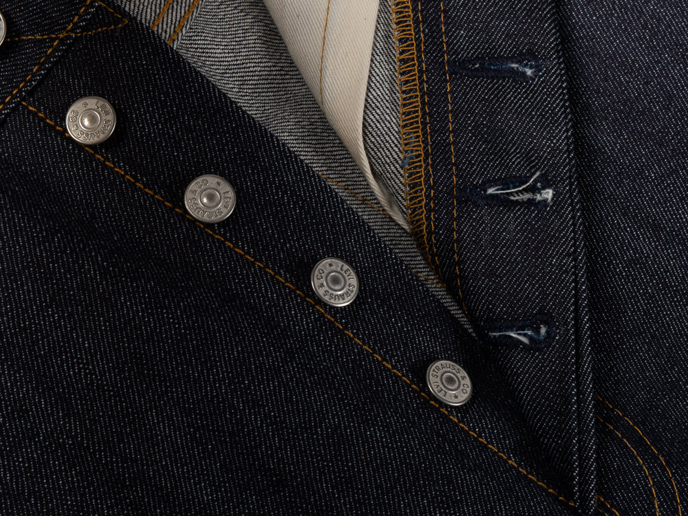 The 1947 501 was the jean of a new generation. After WWII when raw materials became available again, Levi's could be made again with their orginal features, returning to heavy production to meet a growing demand. By the late 1940s, Levi's jeans were updated and aimed at the emerging middle class. With a slimmer fit and no extra details like the cinch or suspender buttons, the 1947 501 was a jean for a changing time. However it still marked the return of classic 501 features, such as the watch pocket rivets. Thanks to new double-needle technology, the famed double-arched stitch could be mass-produced in uniform size and design, no longer subject to the sewing skills of the individual worker. Arguably the starting point for every good pair of jeans, both in construction and fit since their creation.