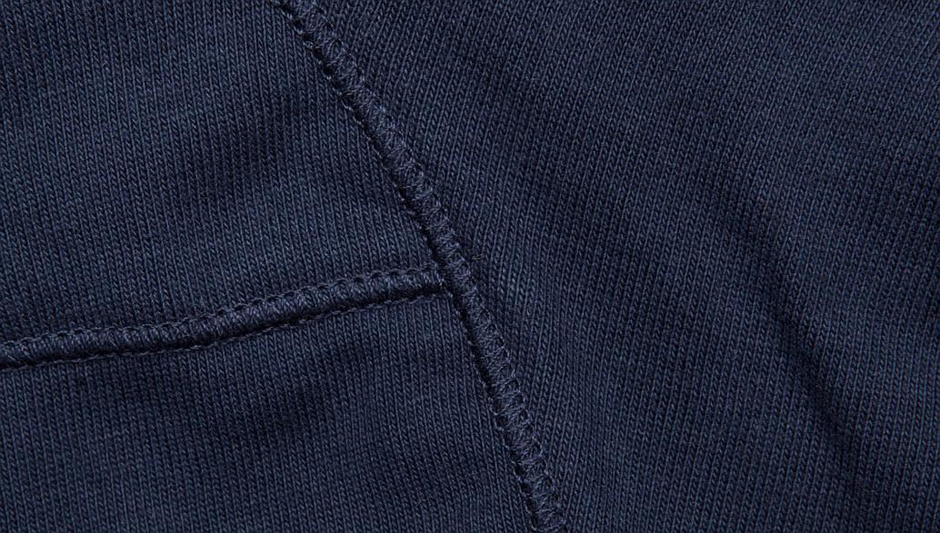 - 2-thread, 220 gr. (7.8 oz.), knitted on loop wheel machine
