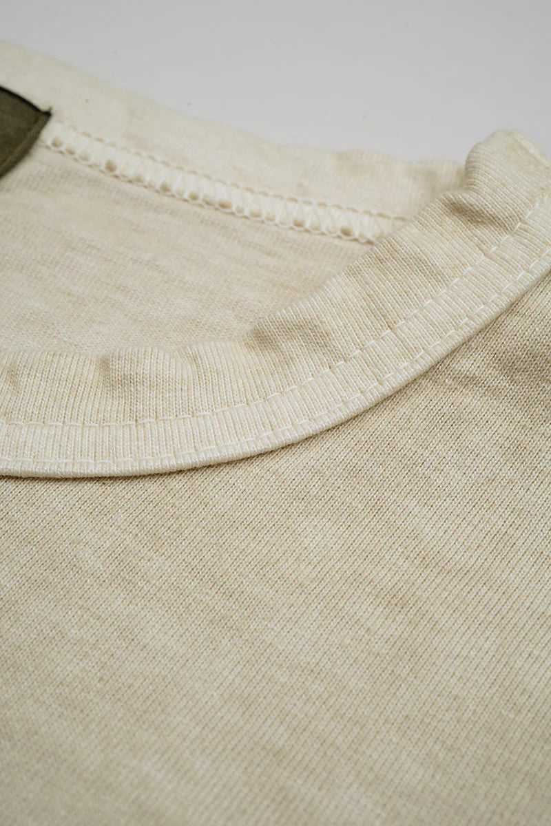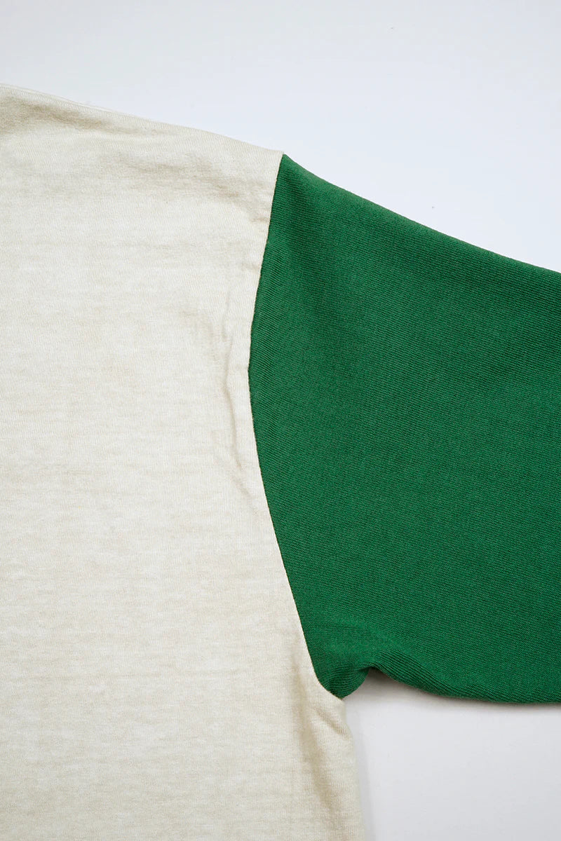 NIGEL CABOURN MAINLINE 7.8oz BASEBALL SHIRT - IVORY/ GREEN