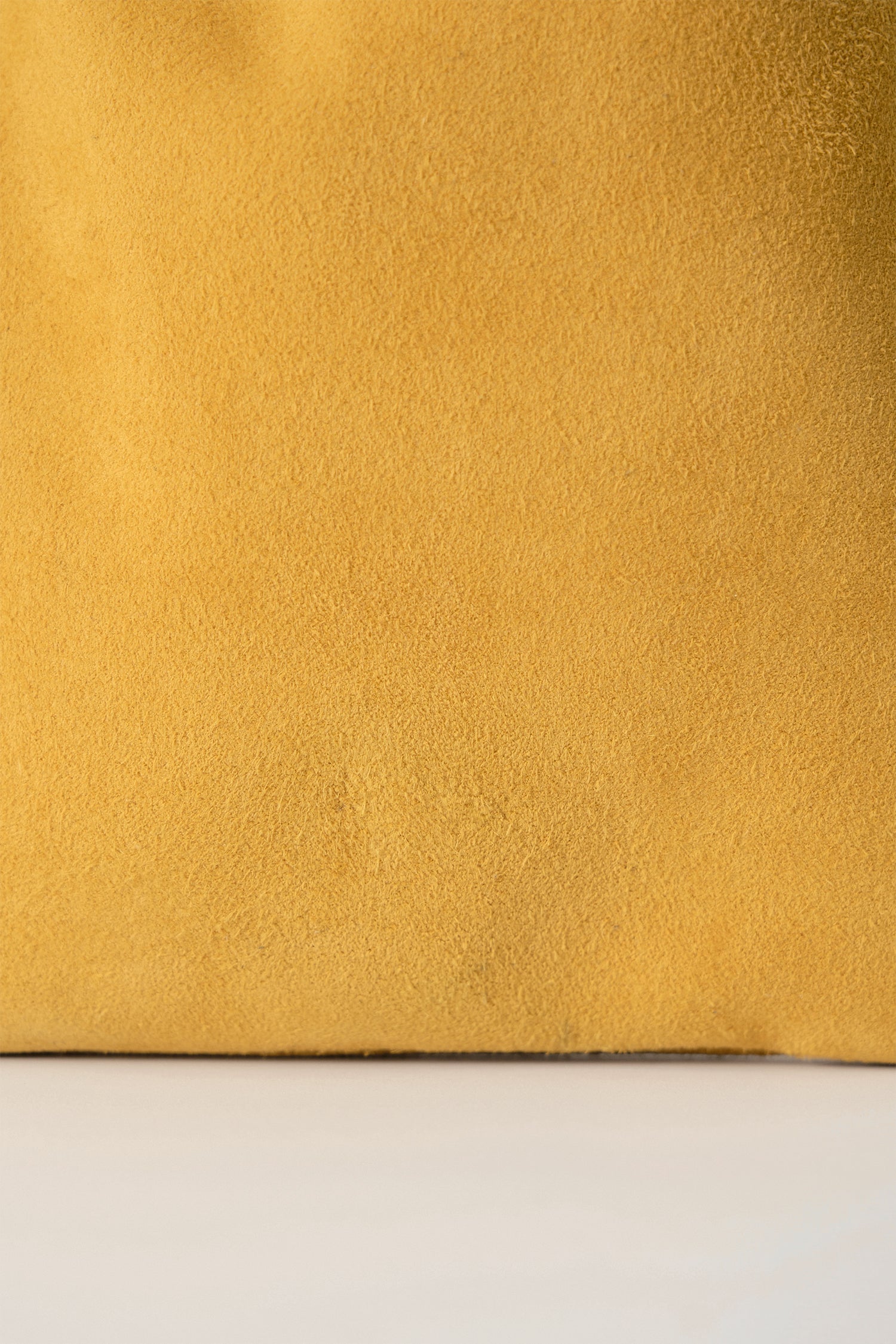This mini Fatu stands out with its minimalist design. Its practical size, large enough to hold a phone, makes it perfect for casual outings, easily carrying essentials. Crafted from soft lambskin, it naturally ages with age, developing wrinkles and grain. Made from real suede in vibrant colours, it offers a soft, luxurious texture and adds a sophisticated touch to your look with every wear. It can be worn crossbody or as a tote with the detachable strap, boasting a versatile design. The central drawstring closure creates a natural shirring effect, adding a soft curve to the overall silhouette.