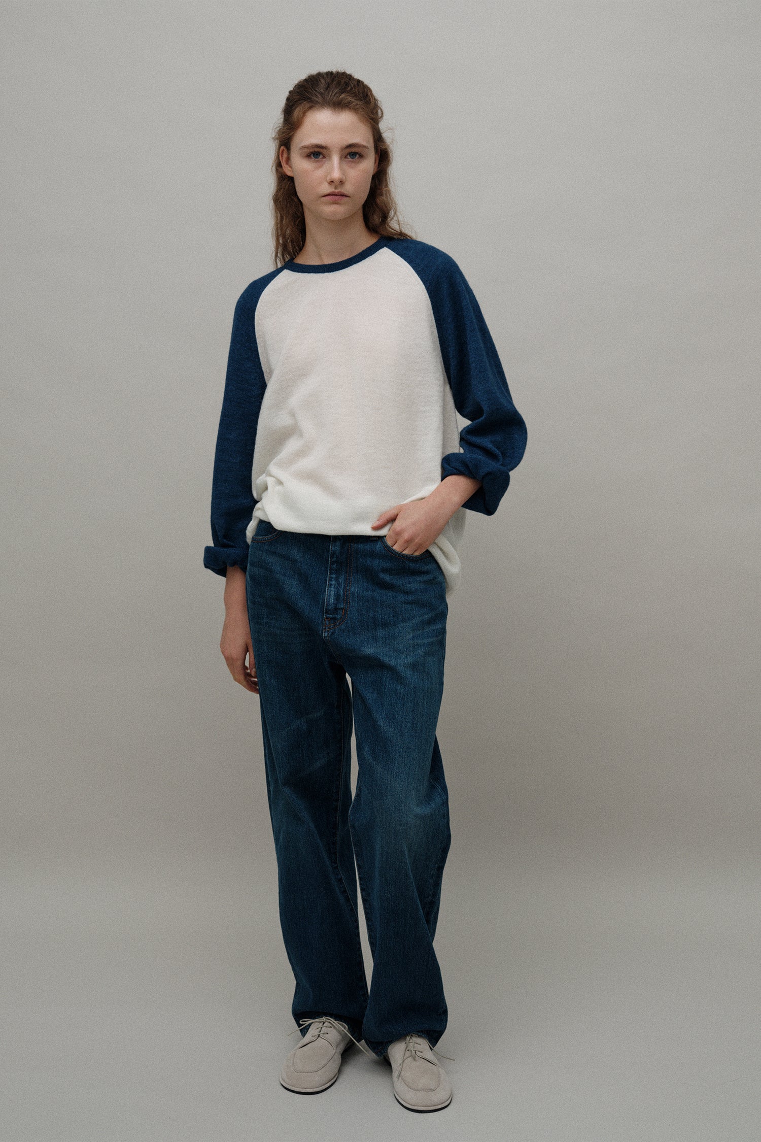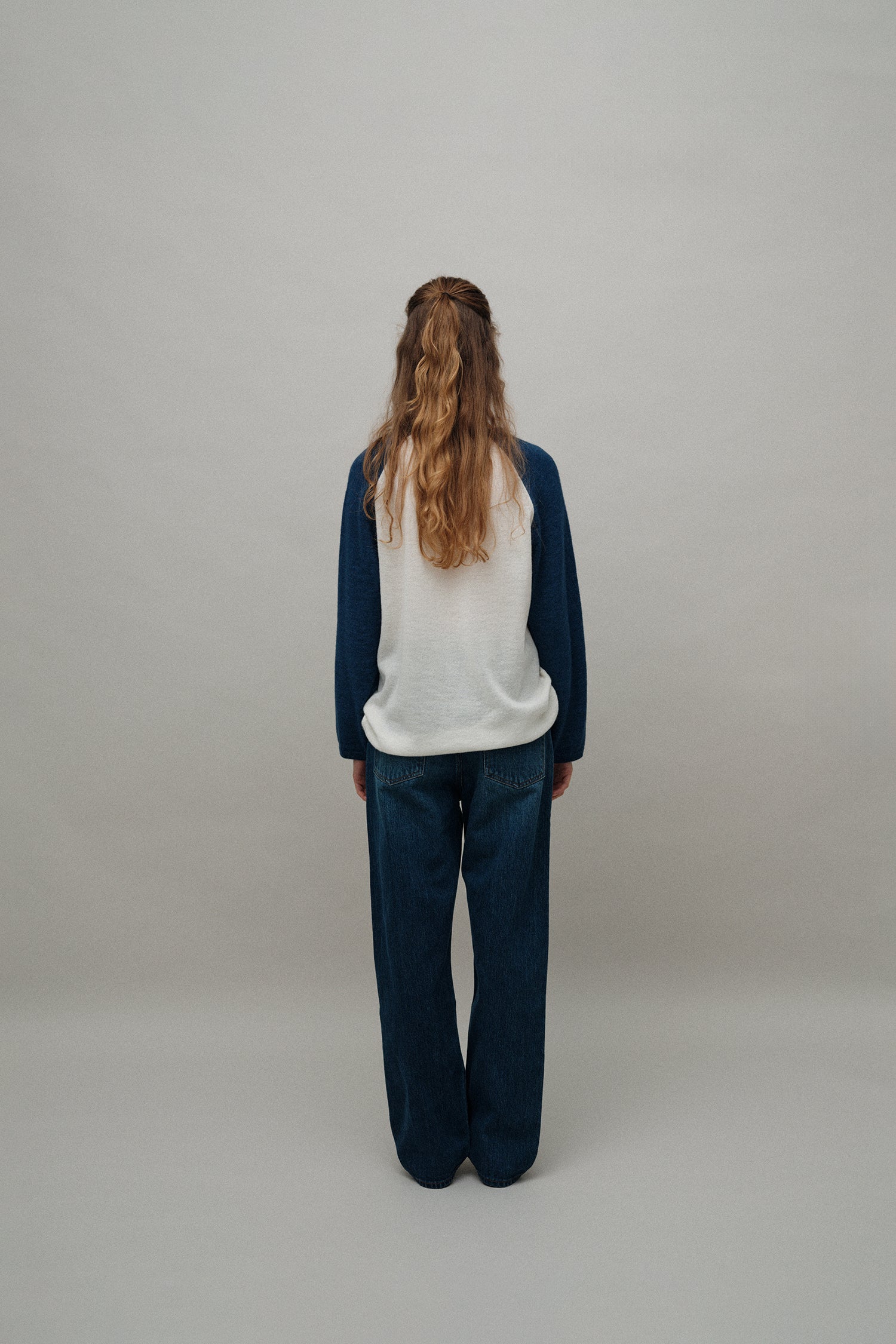 NOTHING WRITTEN PALIE RAGLAN PULLOVER - IVORY/ BLUE