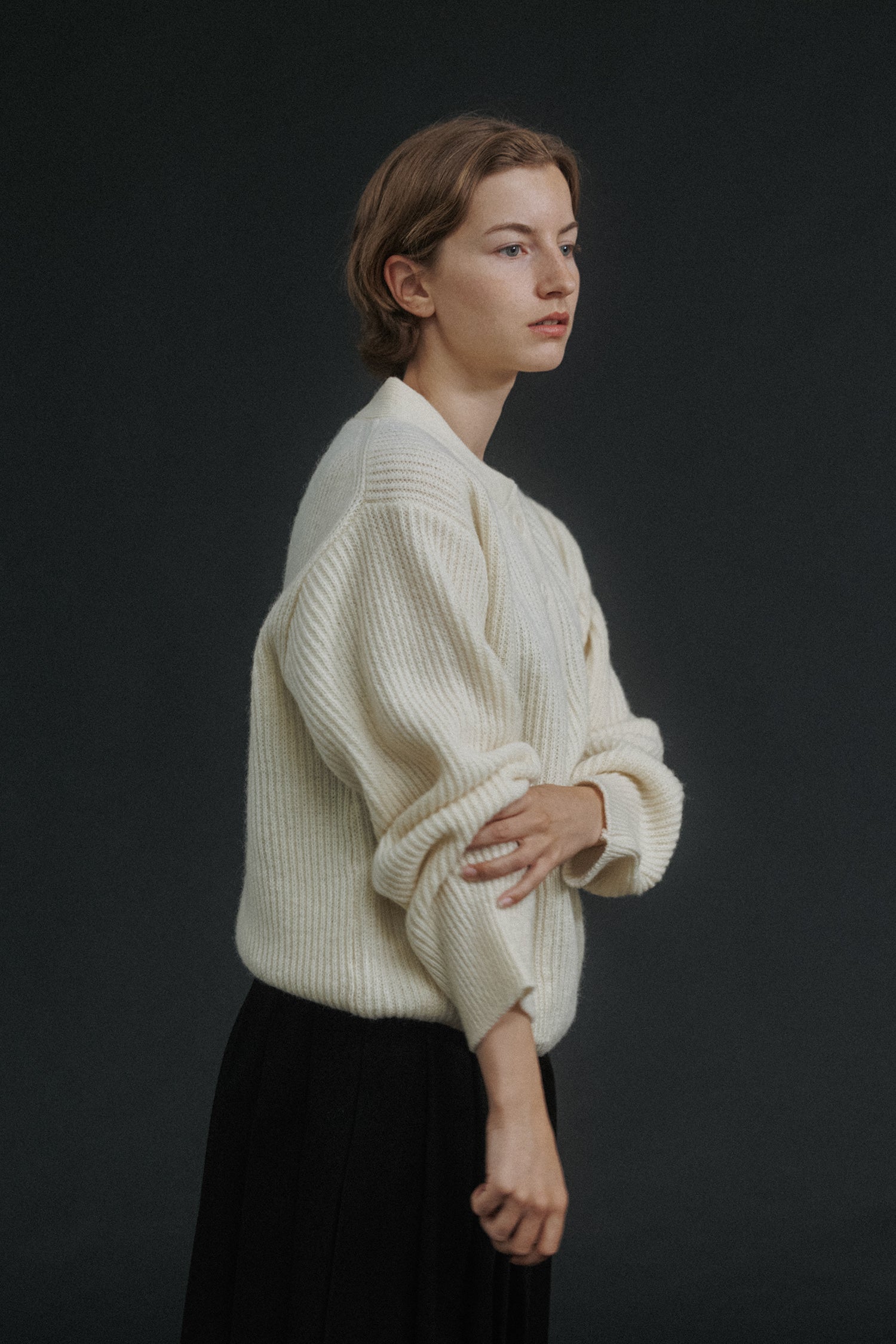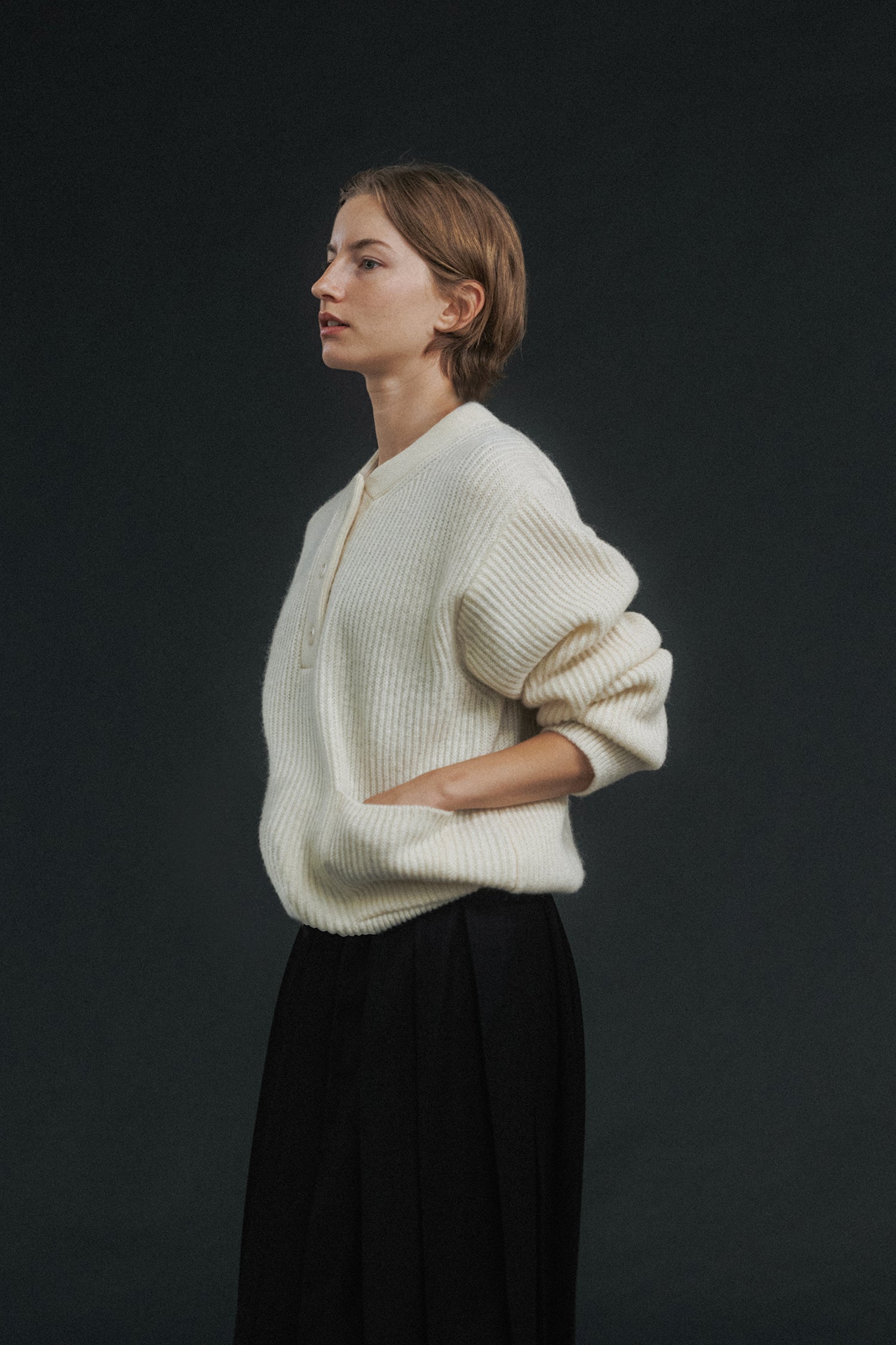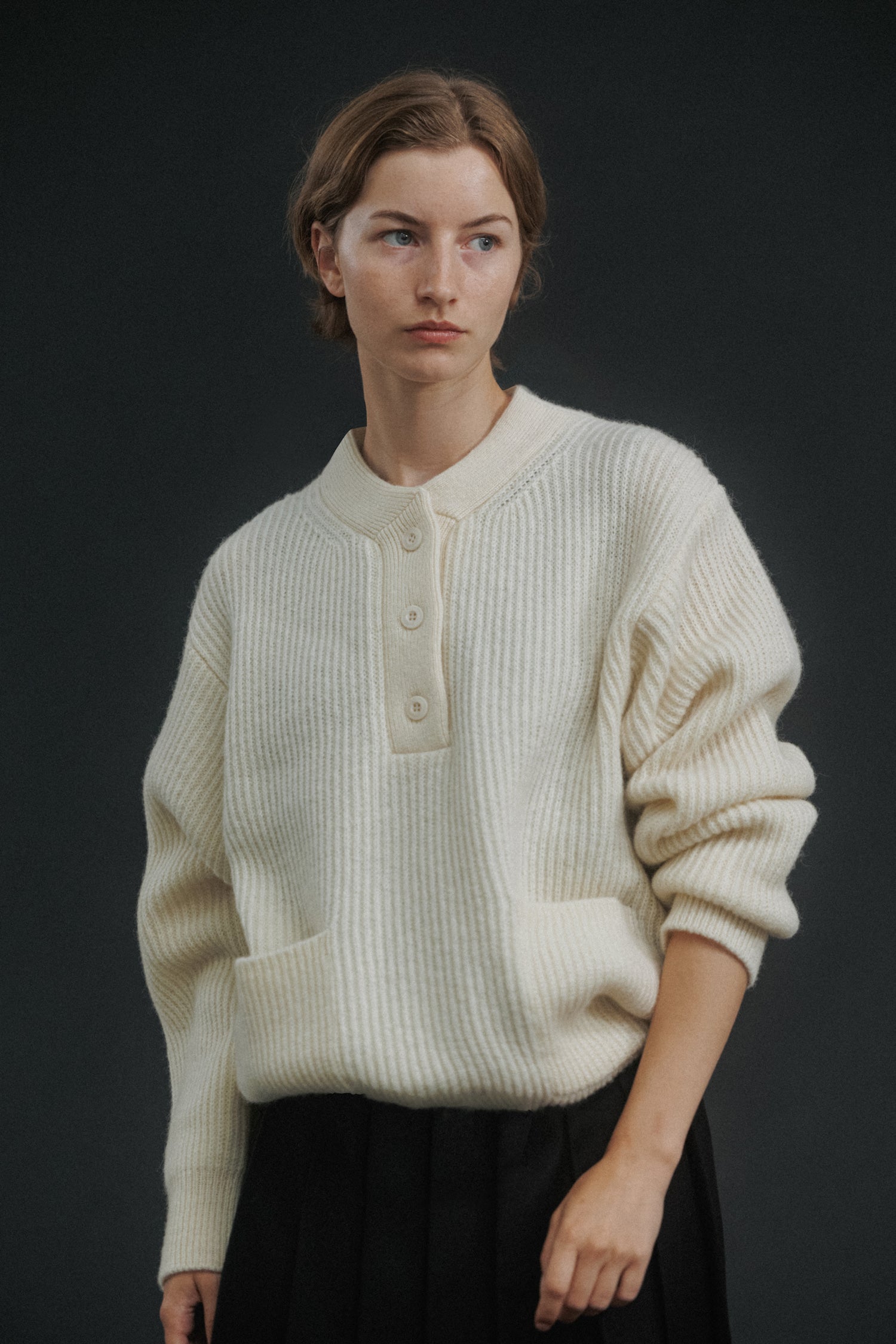 NOTHING WRITTEN SHETLAND WOOL HENLEY - NECK PULLOVER - IVORY