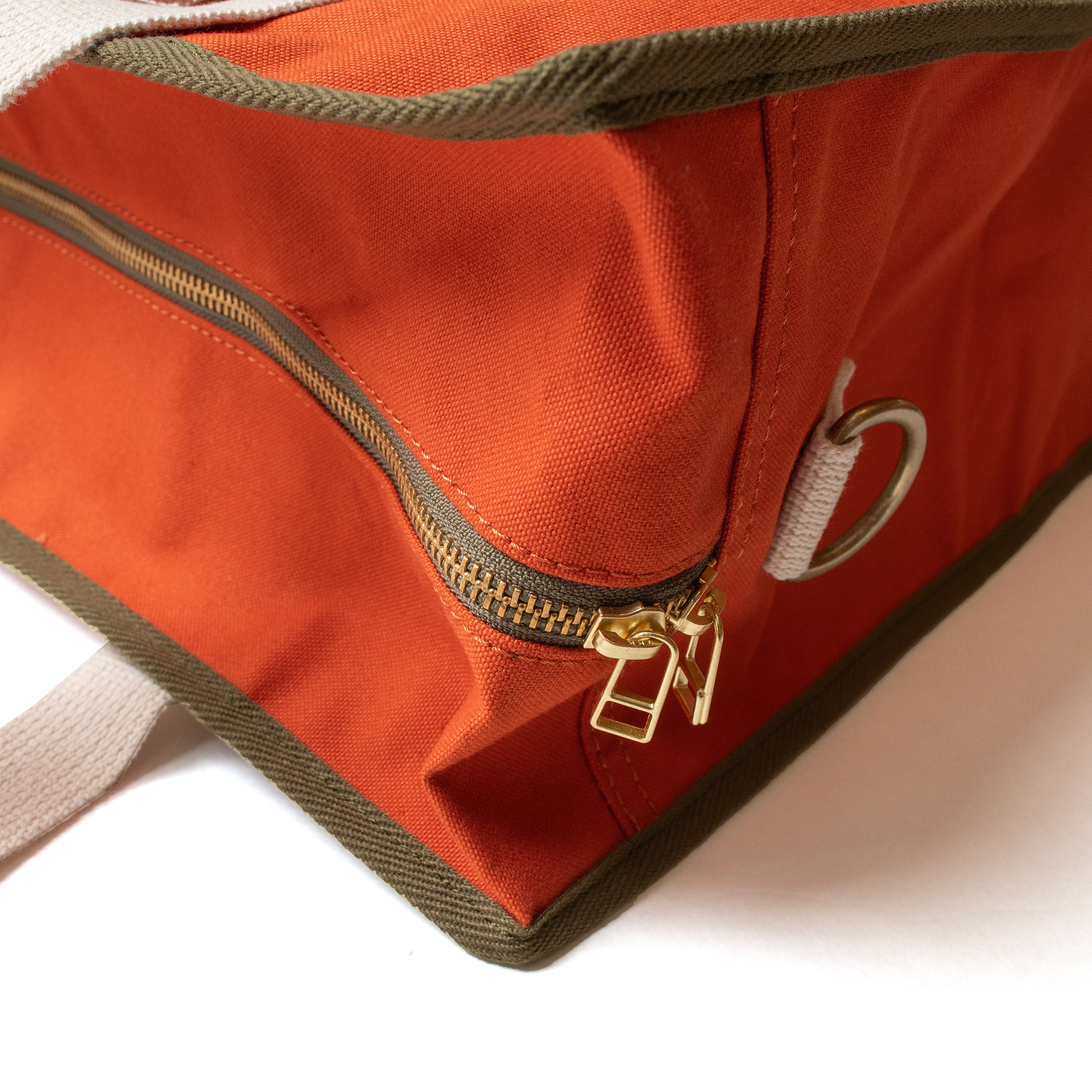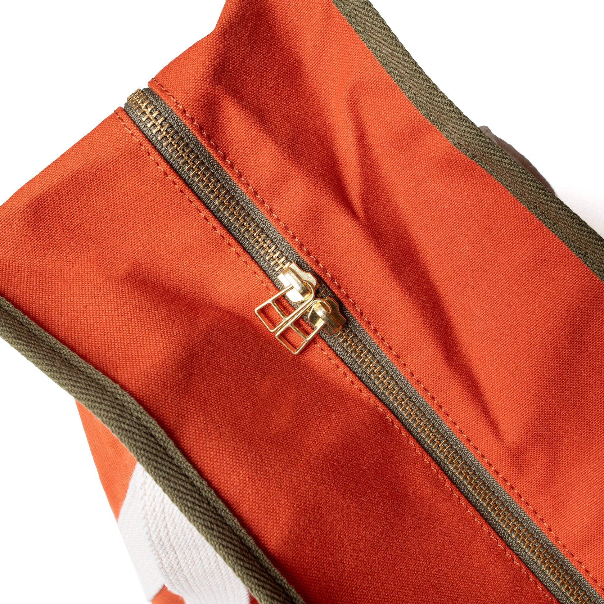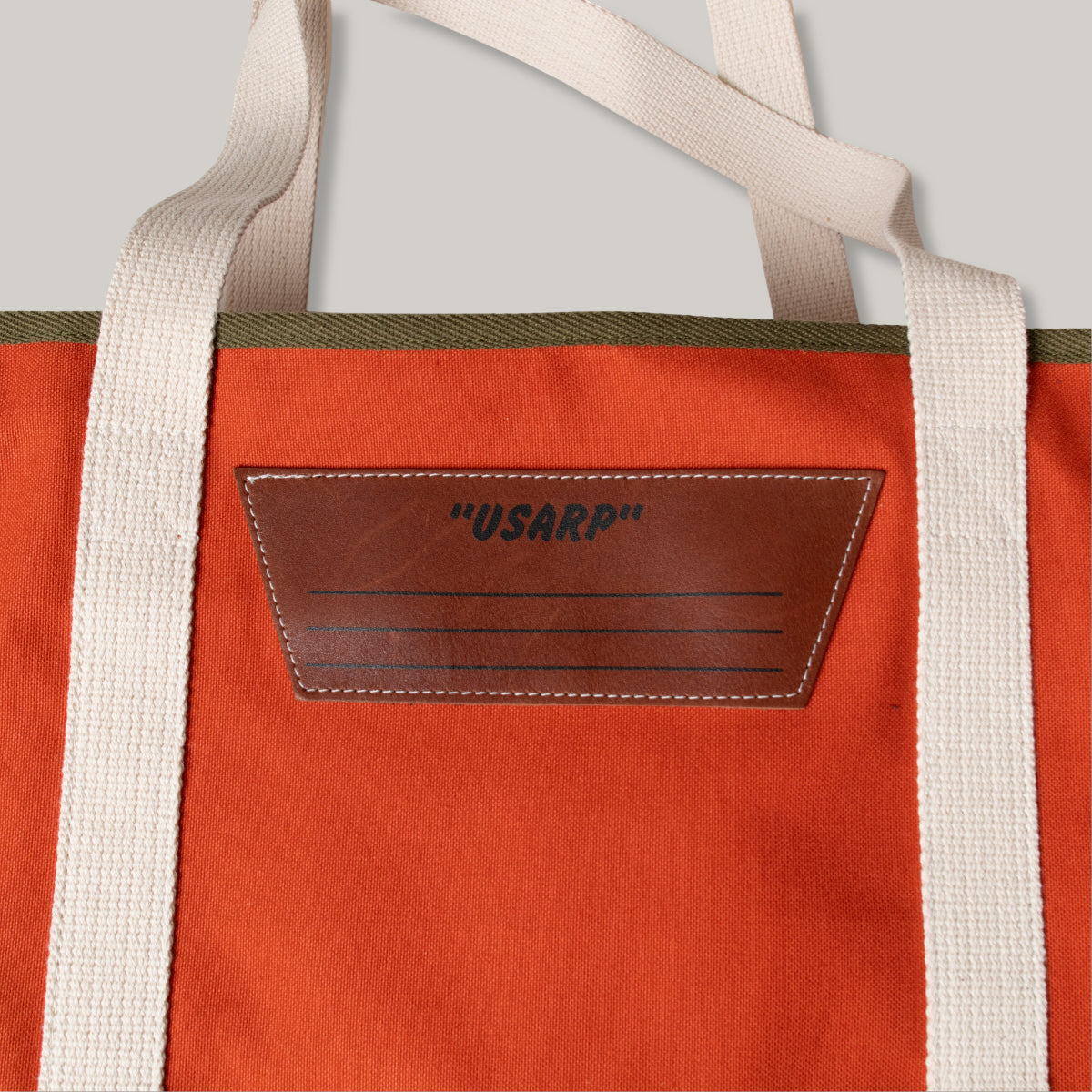 Words by Jonathan Lukacek. There are obscure vintage references and there are common ones. The USARP was the US Antarctic Research Programme and was a civilian and military joint research programme started in 1959. These bags were apparently issued to the civilian department. I believe these bags were made by The Diamond Brand which made the Yucca Pack for the Boy Scouts of America in the 1930s. I adore the colour palette so we went with Alberton Japan's 18 oz basic duck fabric in a great dusty orange colour, which looks very much like the original bag. Heavyweight cotton webbing was used for the handles, and side pull. Japanese leather reinforcements, name plate, and brass D-rings by Kamishiraishi brass in Tokyo. These are extra special sand-cast brass D-rings with a nice weight to them and gives the bag an extra special detail that’ll age nicely.