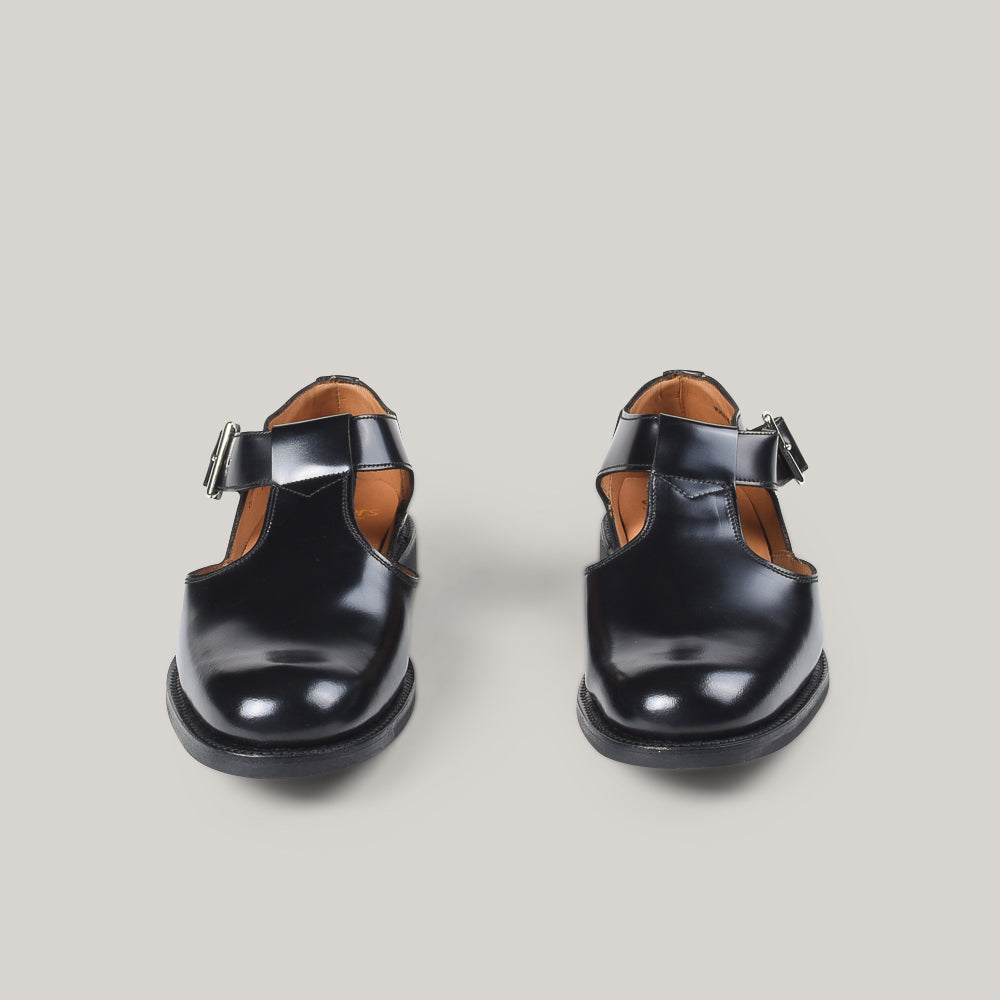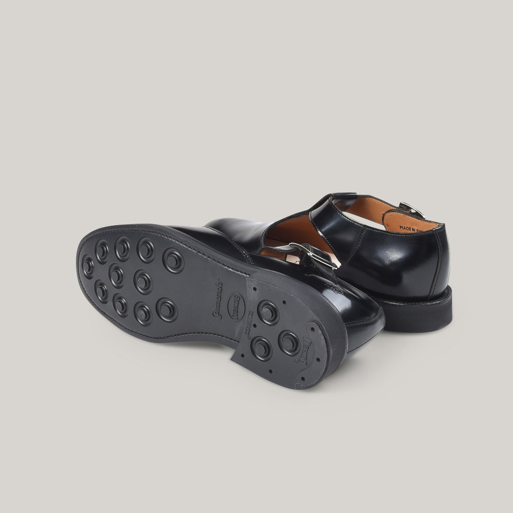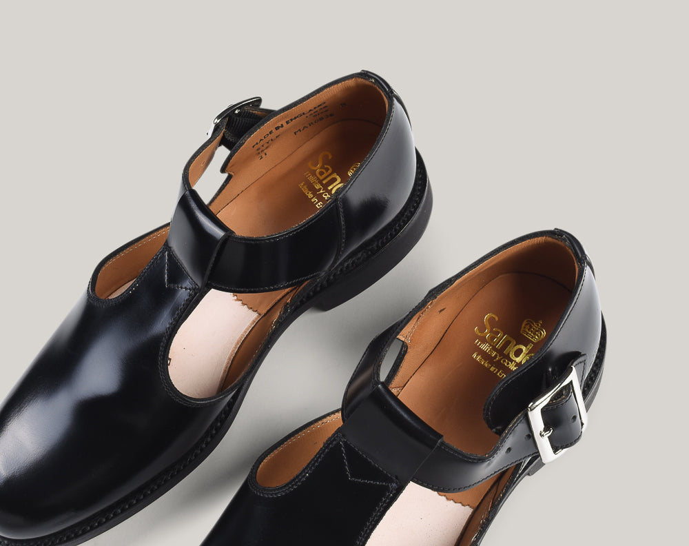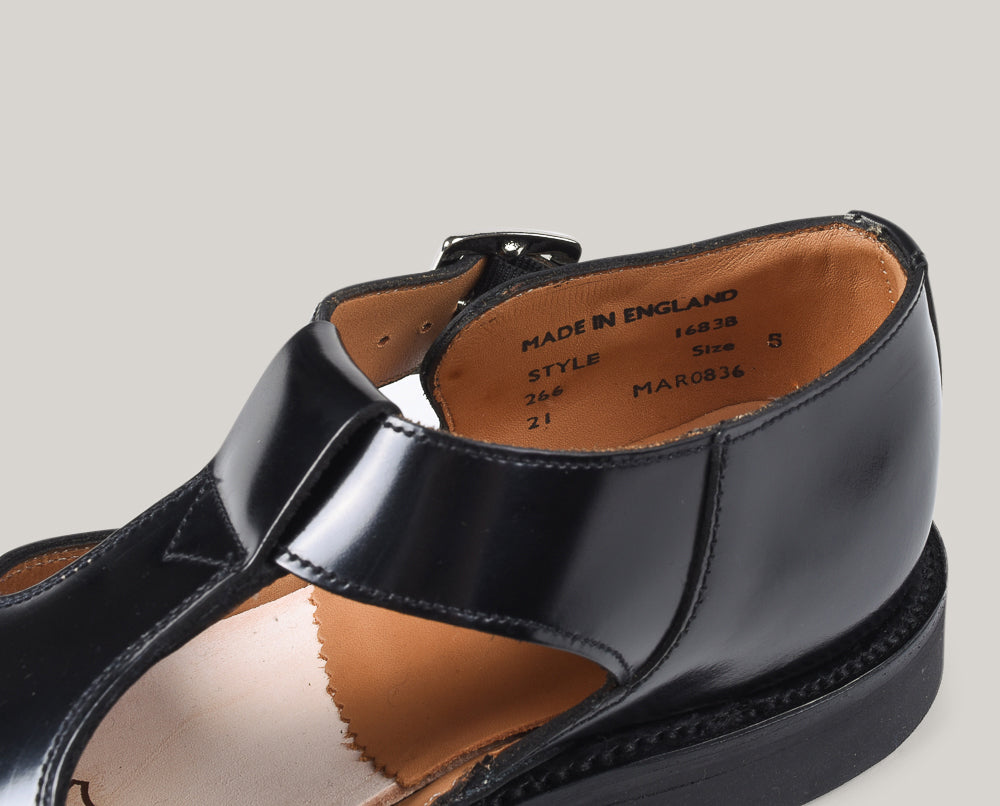 A stunning sandal from Sanders Japanese line which draws from original military specifications from the Ministry of Defence. Hand made in a high shine calf leather, with a leather inner and Itshide commando rubber sole. These are elegant, timeless, incredibly strong and most of all, comfortable. A chic accompaniment to any outfit.