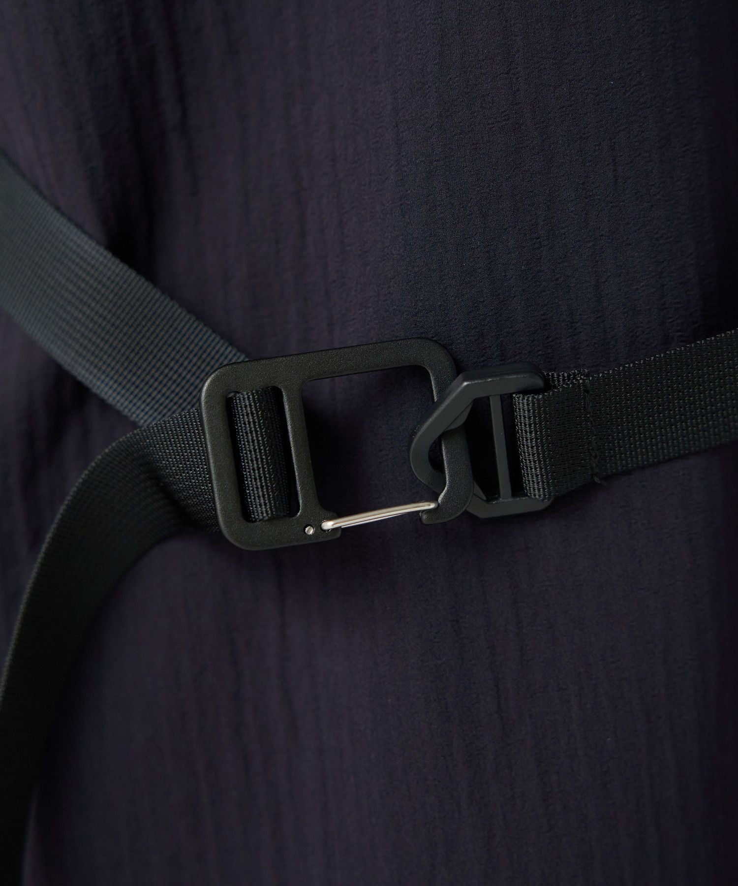 Made with 64% eco-friendly recycled polyester, this soft, comfortable fabric features a natural, wrinkled surface and a 3D hollow layer for warmth and body heat retention. Lightweight and featuring omnidirectional stretch, it's perfect for active camping. This women's short-sleeved dress features a lightweight, warm, and airy fabric, providing the comfort of being wrapped in a futon. It features a relaxed pull-over fit and a hook belt for an adjustable silhouette. The clean, open V-neck creates a kimono-esque look. Slits on both sides of the hem allow for easy movement.