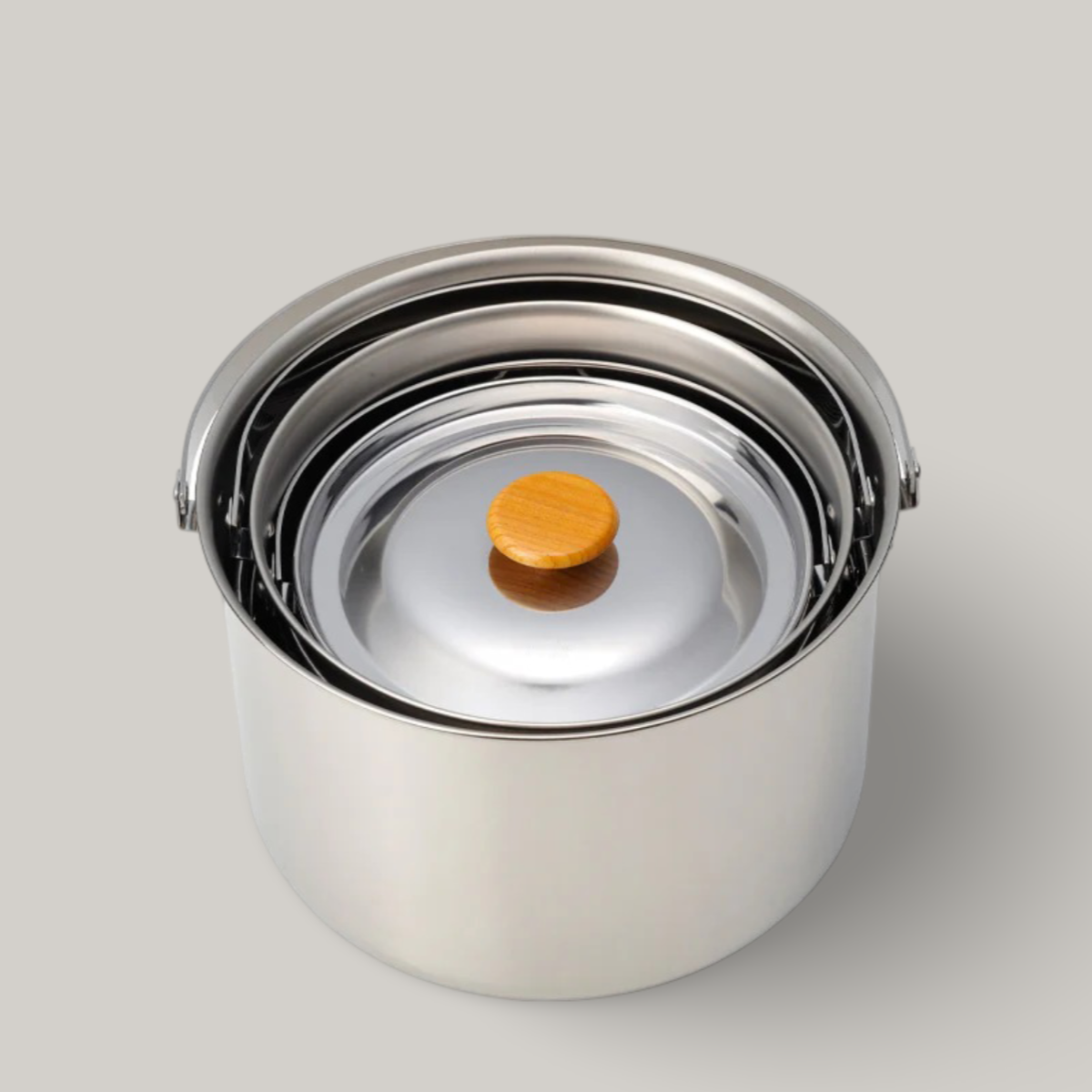 A complete camp kitchen cookware set, the Field Cooker Pro. 3 Set is a four-piece collection of pots, frying pans, and a mesh strainer to suit all cooking needs. The three pots range in capacity from 3L to 4.3L with adjustable handle for easy mobility. The included wooden handle can be used interchangeably on either the pan or pot. Additionally, use the handle case as an oven mitt. When not in use, nest all items together and store them conveniently.