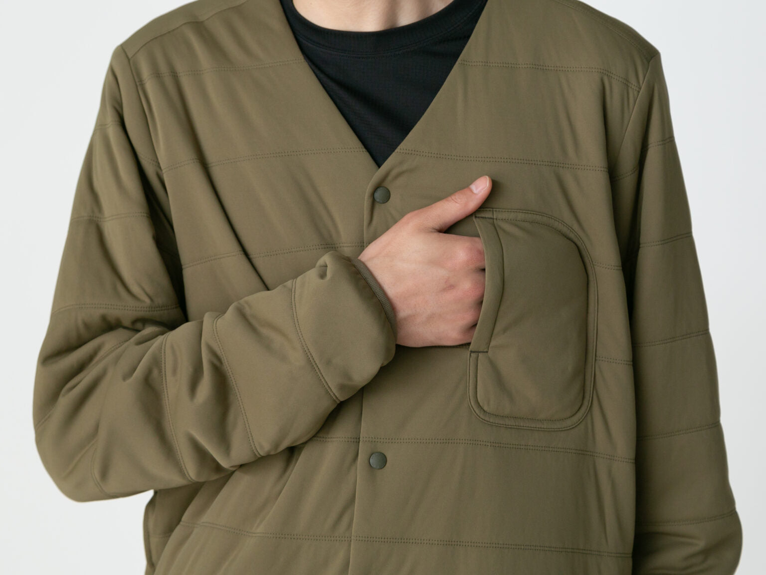 The cardigan from Snow Peak apparel's flag ship 'Flexible Insulation' range. Improved yet again for SS25 with a smoother feel and majority recycled materials.