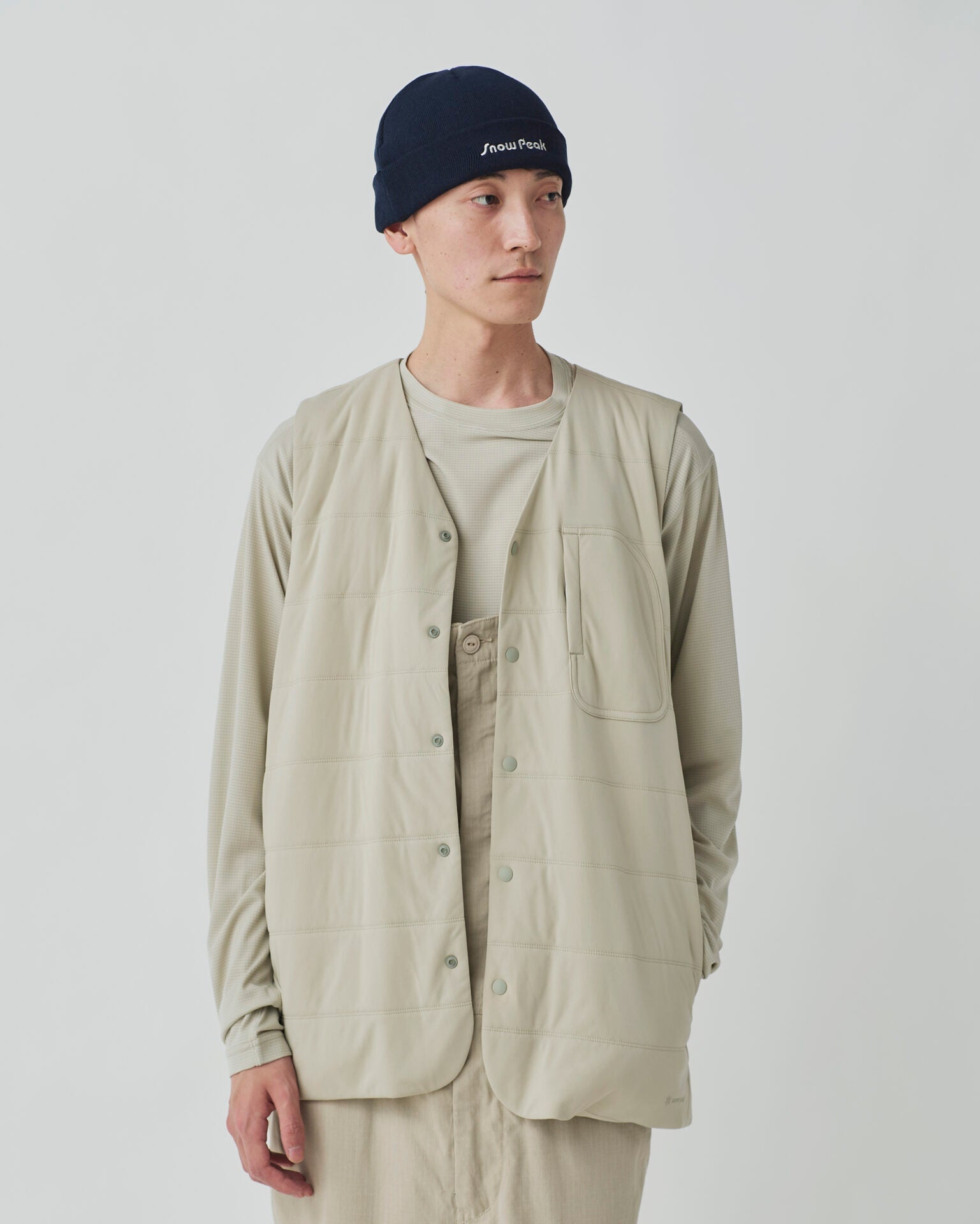 The vest from Snow Peak apparel's flag ship 'Flexible Insulation' range. Improved yet again for SS25 with a smoother feel and majority recycled materials.