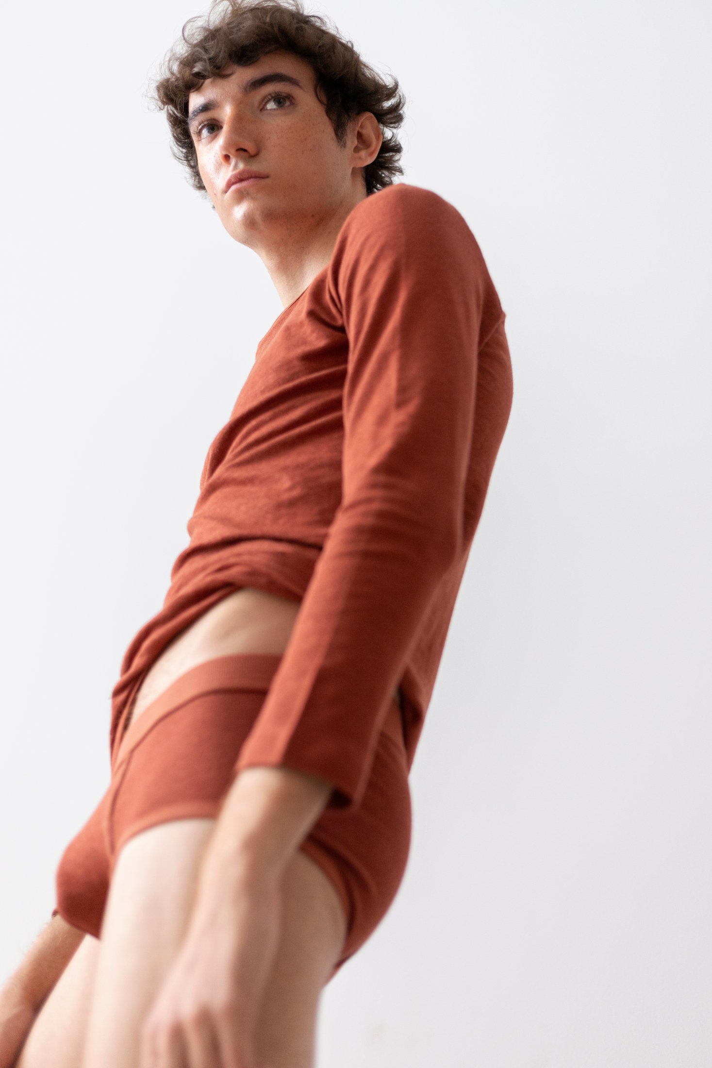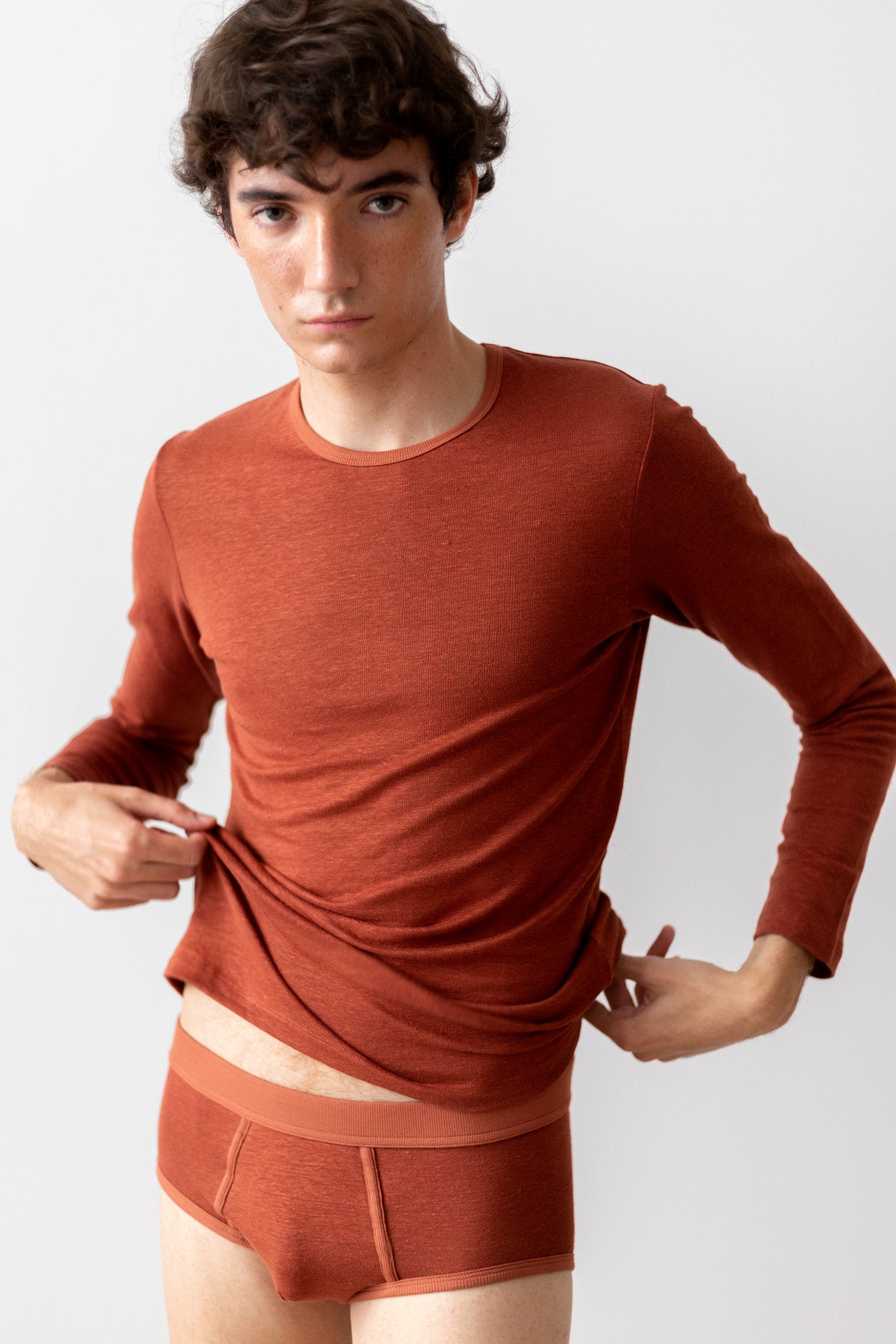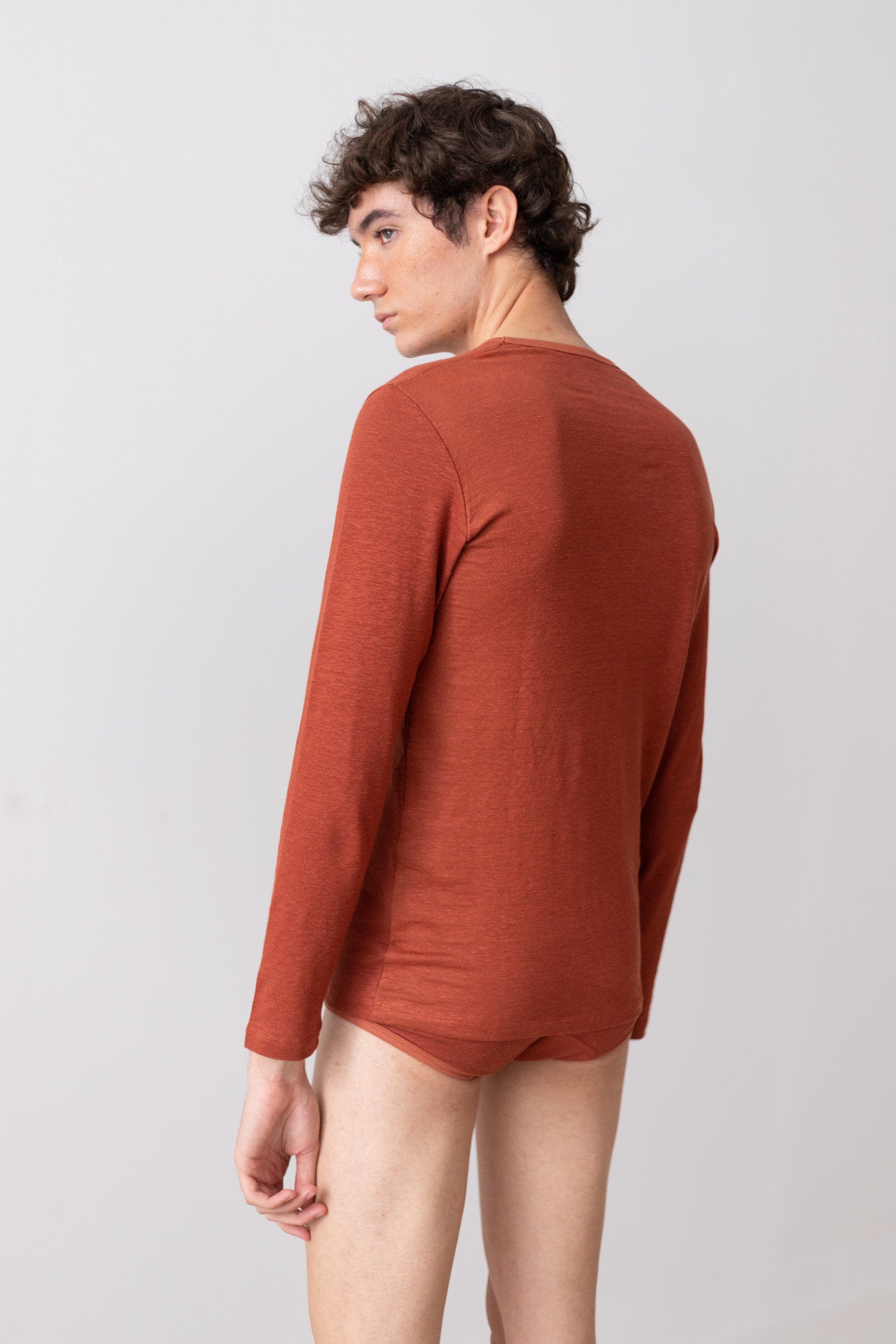 This simple and versatile long-sleeved T-shirt is made from European linen. A highly breathable jersey that will keep you cool in summer and warm in winter, making this shirt the perfect base layer.