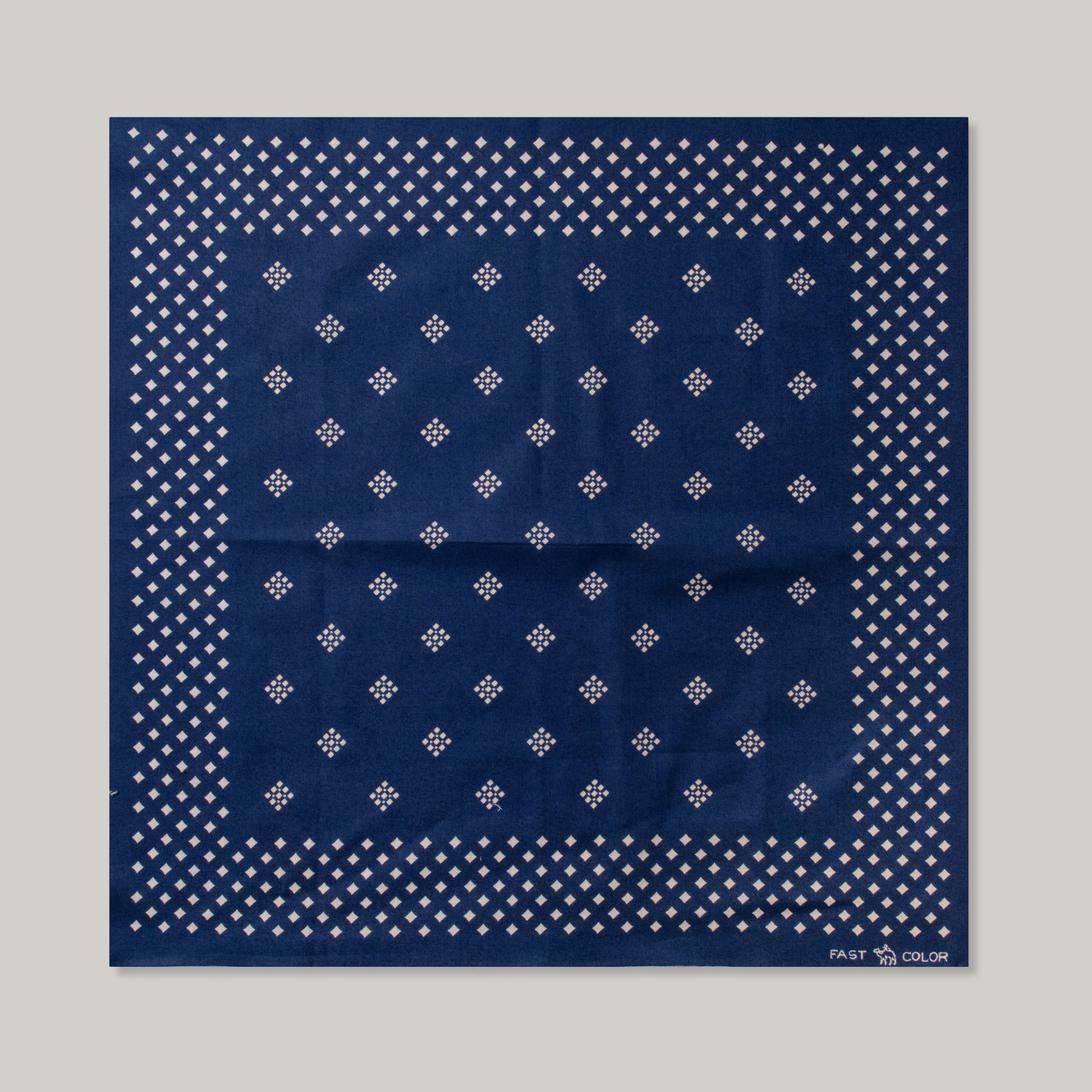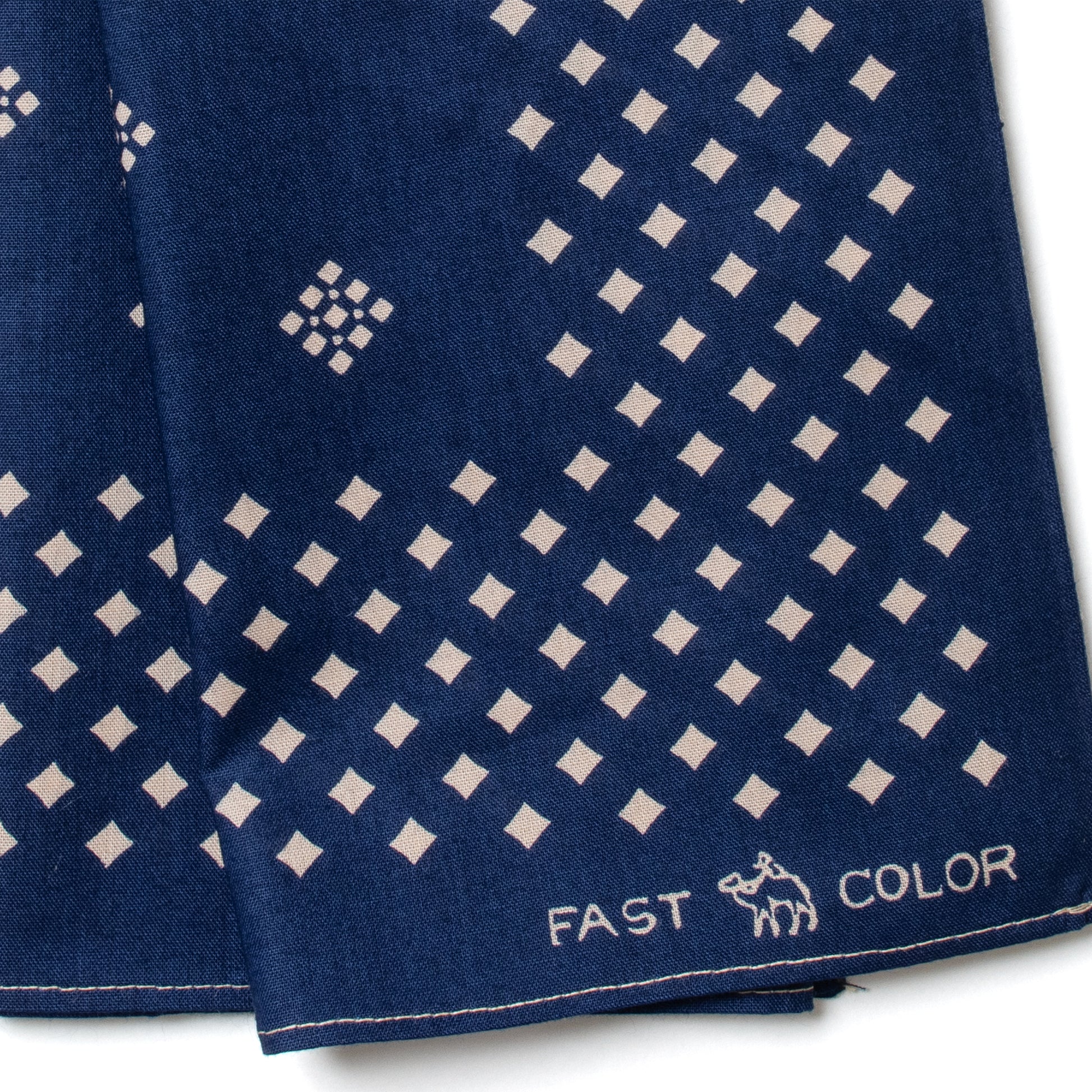Camel brand was a now defunct bandanna brand that was a sub-brand of the Elephant brand. During the 1930s-1940's there were a small rare set of these bandannas made with a camel logo. They are prized and regarded by fast-colour bandanna collectors. They are usually small and feature floral or very simple designs. We have resurrected this brand from the depths of obscurity and given it a new high-quality twist. Featuring our original 50x50 cm selvedge fabric, these are printed as carefully and thoughtfully as our mainline. Even though we normally don't do small bandannas we have decided to reproduce these old rare designs for people to enjoy again. In addition to the bandanna designs we have created what we feel, as a thoughtful reproduction of the camel brand sticker which there seems to be no actual print of. We have plenty of evidence but no absolute proof. So we asked our friend Satoshi Kaga, to draw an original reproduction. We feel this is the best representation of the original. These will be branded in two options in the future as "red camel" and "blue camel". Produced and designed by One Ear Brand.
