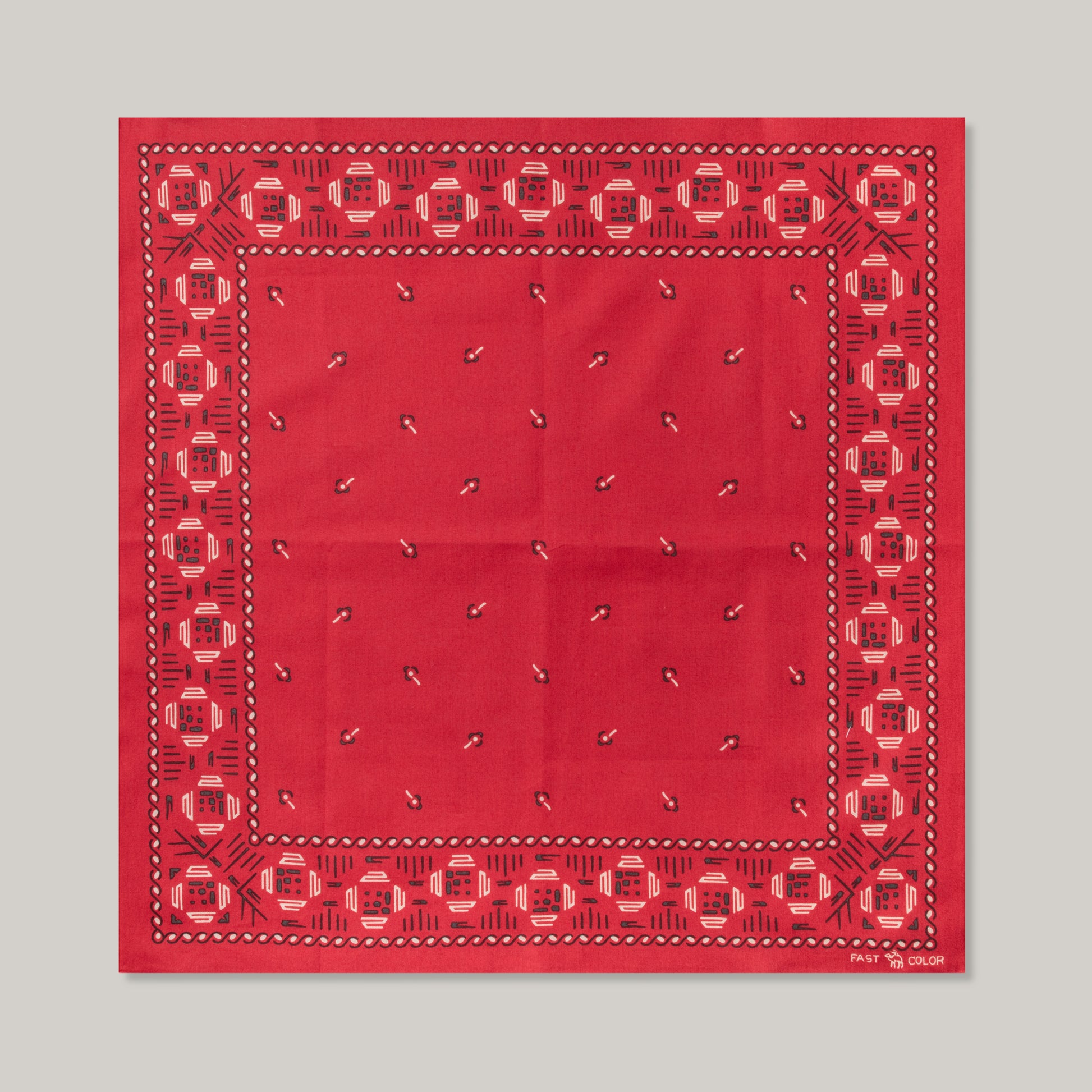 Camel brand was a now defunct bandanna brand that was a sub-brand of the Elephant brand. During the 1930s-1940's there were a small rare set of these bandannas made with a camel logo. They are prized and regarded by fast-colour bandanna collectors. They are usually small and feature floral or very simple designs. We have resurrected this brand from the depths of obscurity and given it a new high-quality twist. Featuring our original 50x50 cm selvedge fabric, these are printed as carefully and thoughtfully as our mainline. Even though we normally don't do small bandannas we have decided to reproduce these old rare designs for people to enjoy again. In addition to the bandanna designs we have created what we feel, as a thoughtful reproduction of the camel brand sticker which there seems to be no actual print of. We have plenty of evidence but no absolute proof. So we asked our friend Satoshi Kaga, to draw an original reproduction. We feel this is the best representation of the original. These will be branded in two options in the future as "red camel" and "blue camel". Produced and designed by One Ear Brand.