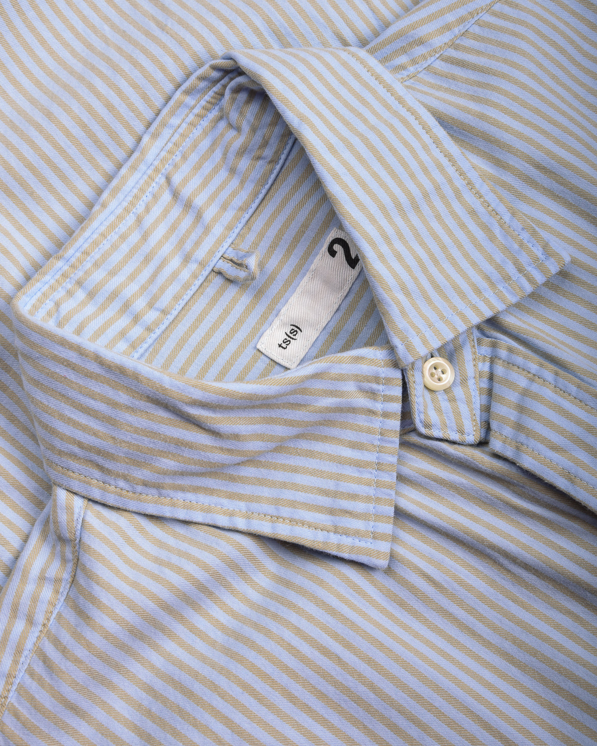 TS(S) GARMENT DYE BLOCK STRIPE BAGGY FIT SHIRT - BLUE