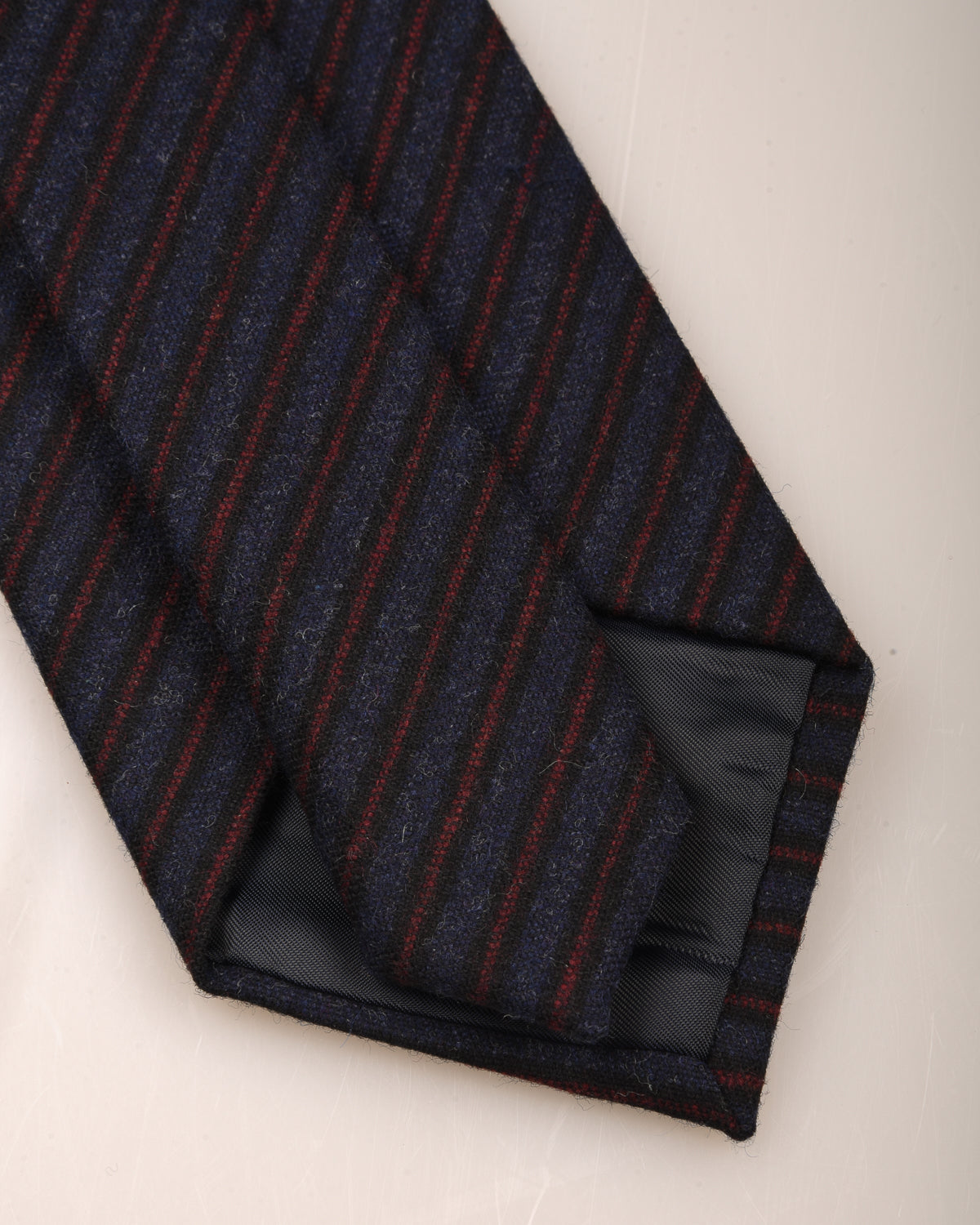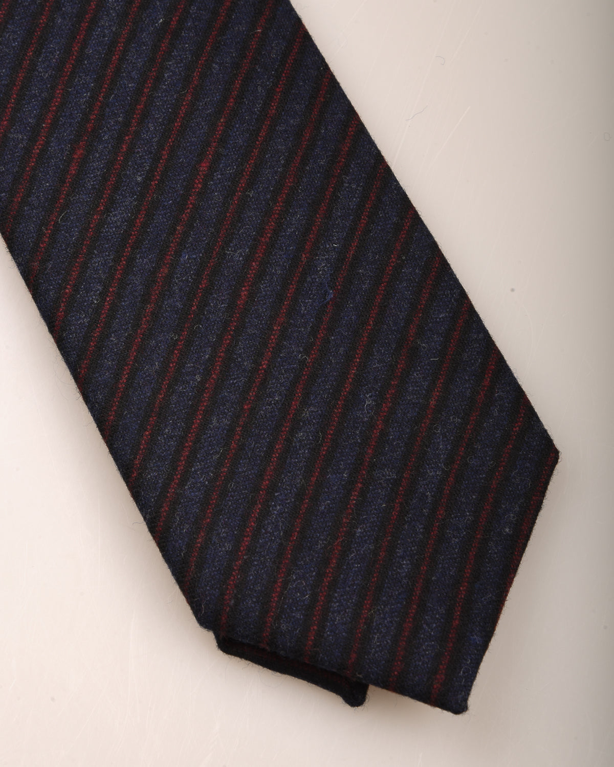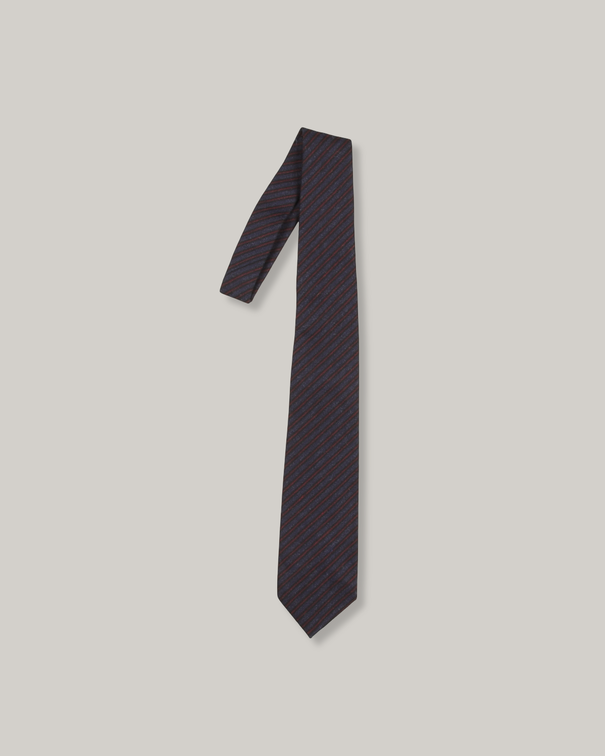 Using a stretch cotton stretch cloth, this fabric has a navy base with diagonal stripes of dark red, to elevate any smart casual occasion.